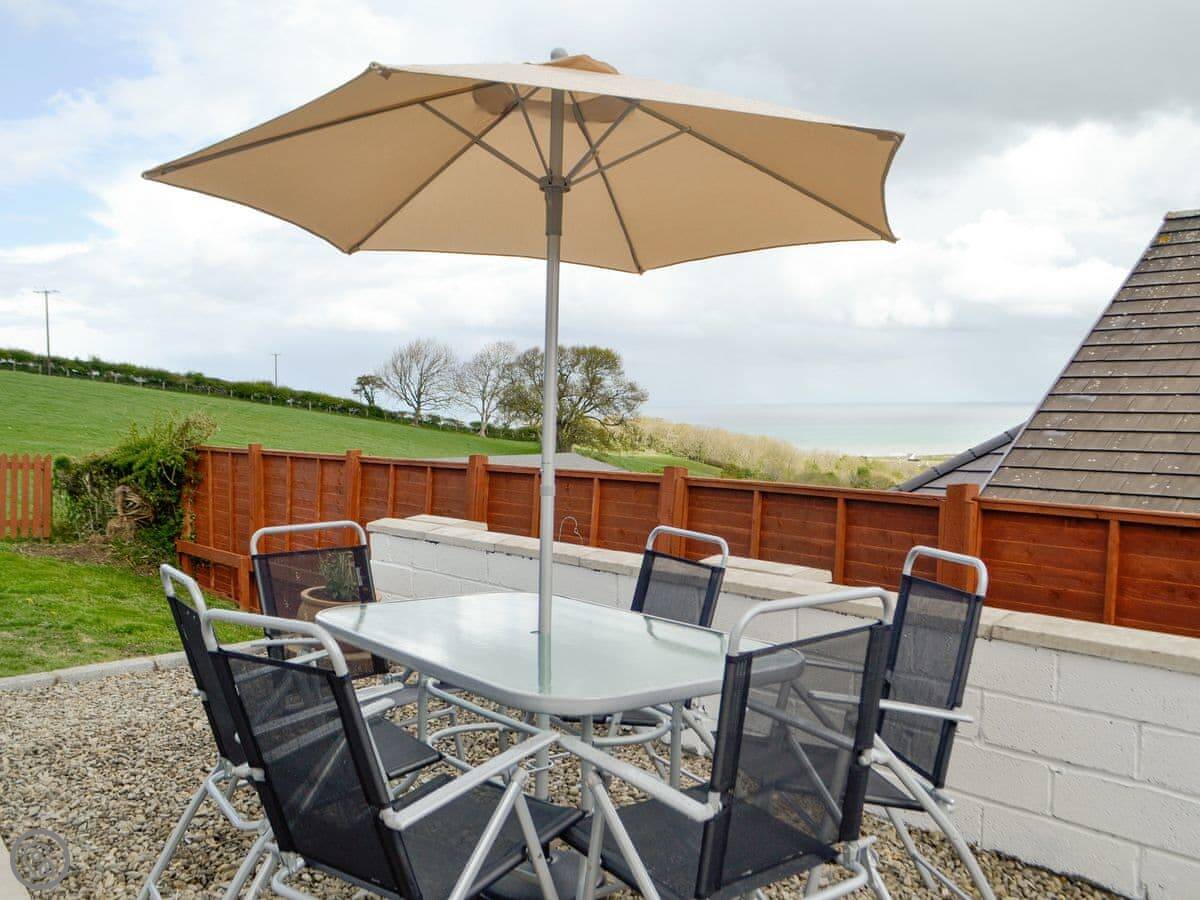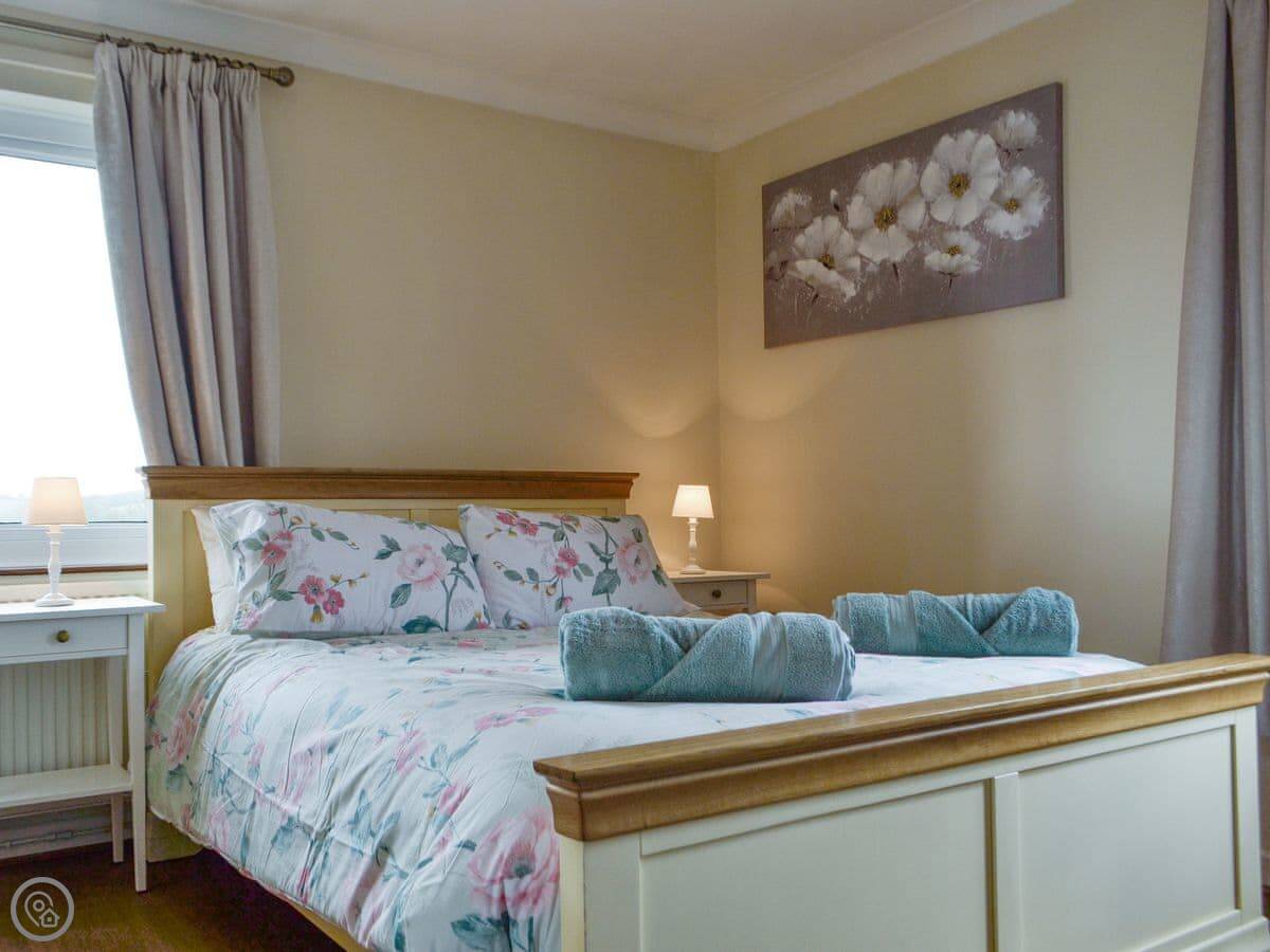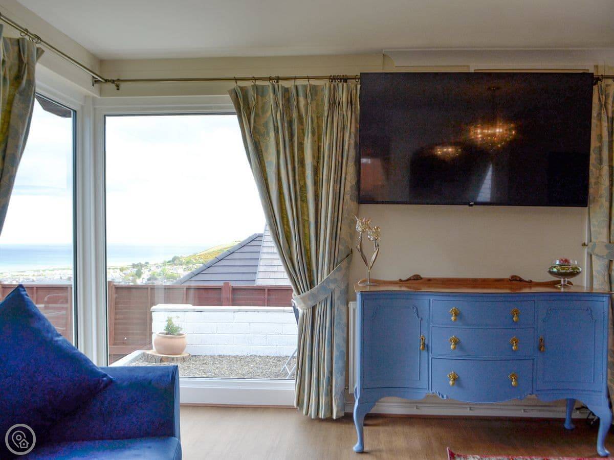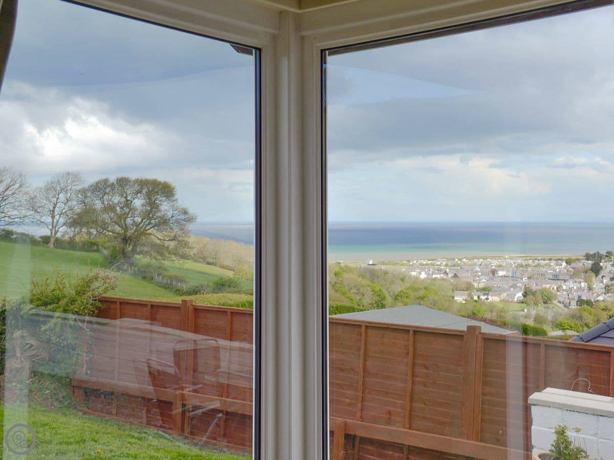 Hafan is set all on the ground floor and comprises an open plan living/dining room fabulous views over the bay of Aberaeron. French doors from the dining area lead out into the garden, and the well-equipped kitchen with dishwasher and breakfast bar has all you could need. The property comfortably accommodates 6 guests across 3 bedrooms, one double, a twin room and a kingsize bedroom with TV. There are 2 bathrooms, one with a shower cubicle and one with shower over the bath. Outside is a lawned garden with patio area, perfect for watching the sunset over Aberaeron coastline. Beach ½ mile.