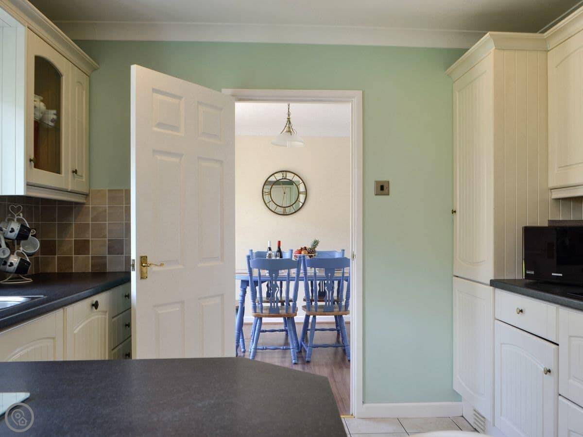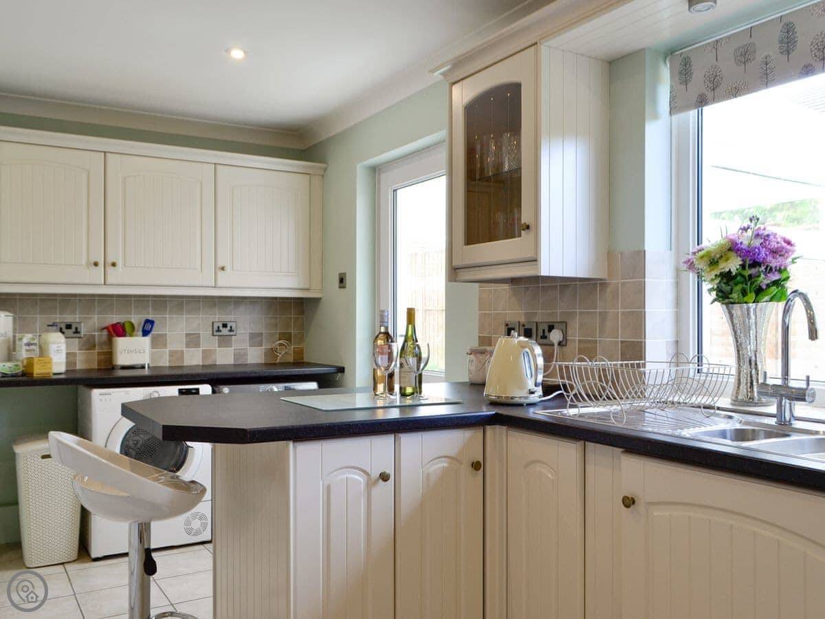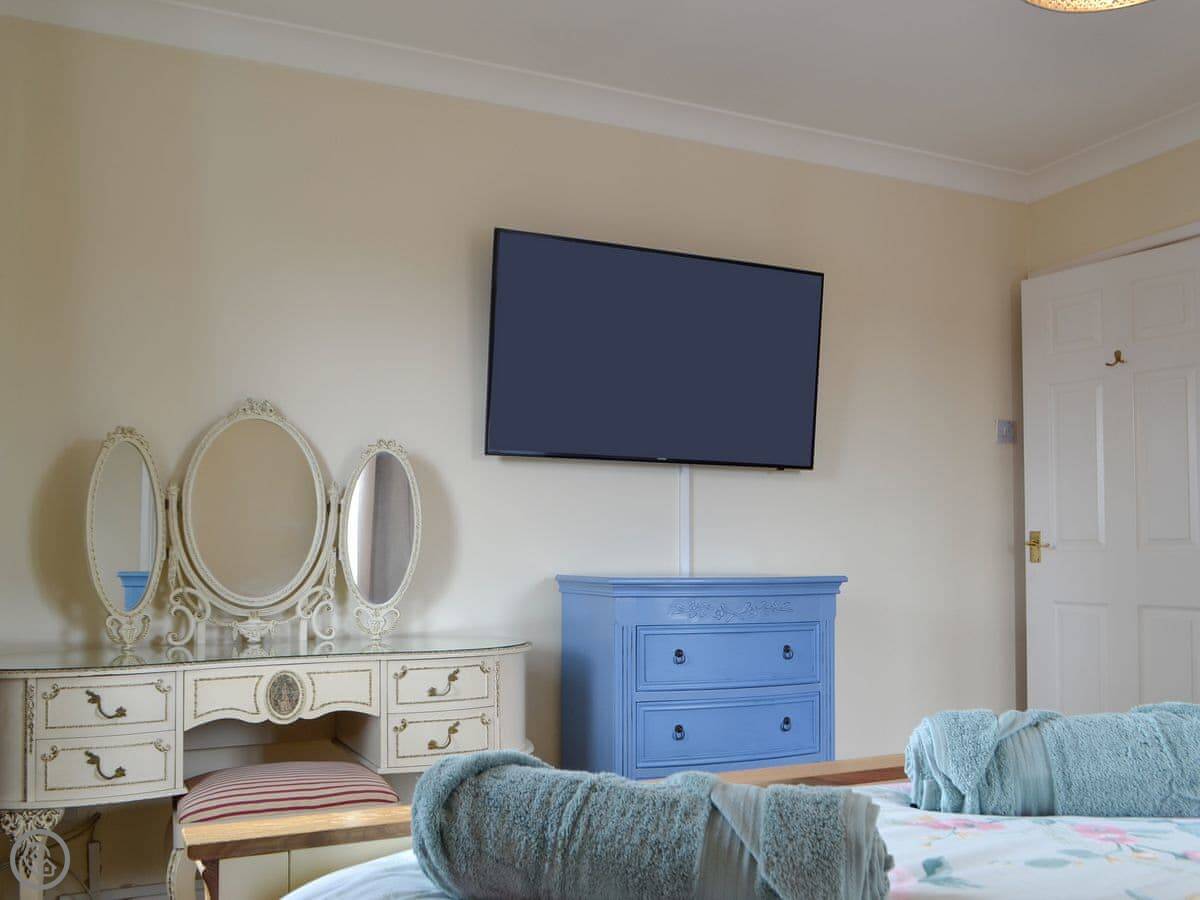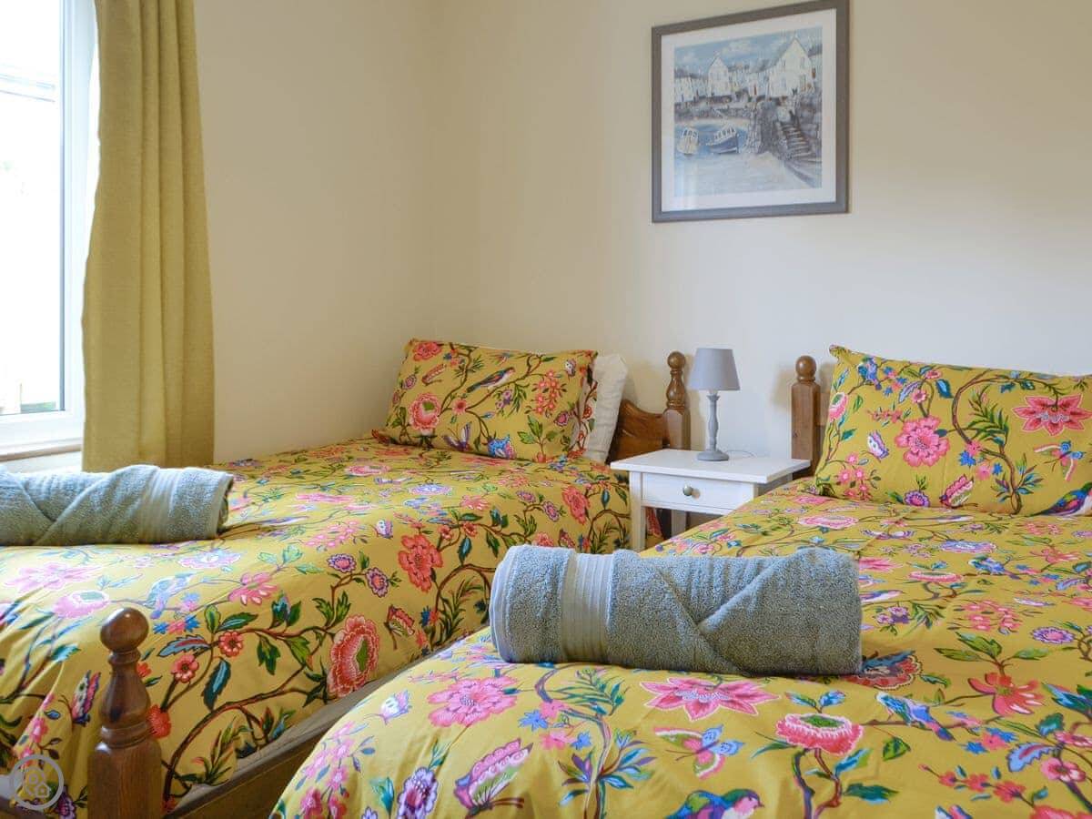 Hafan is set all on the ground floor and comprises an open plan living/dining room fabulous views over the bay of Aberaeron. French doors from the dining area lead out into the garden, and the well-equipped kitchen with dishwasher and breakfast bar has all you could need. The property comfortably accommodates 6 guests across 3 bedrooms, one double, a twin room and a kingsize bedroom with TV. There are 2 bathrooms, one with a shower cubicle and one with shower over the bath. Outside is a lawned garden with patio area, perfect for watching the sunset over Aberaeron coastline. Beach ½ mile.