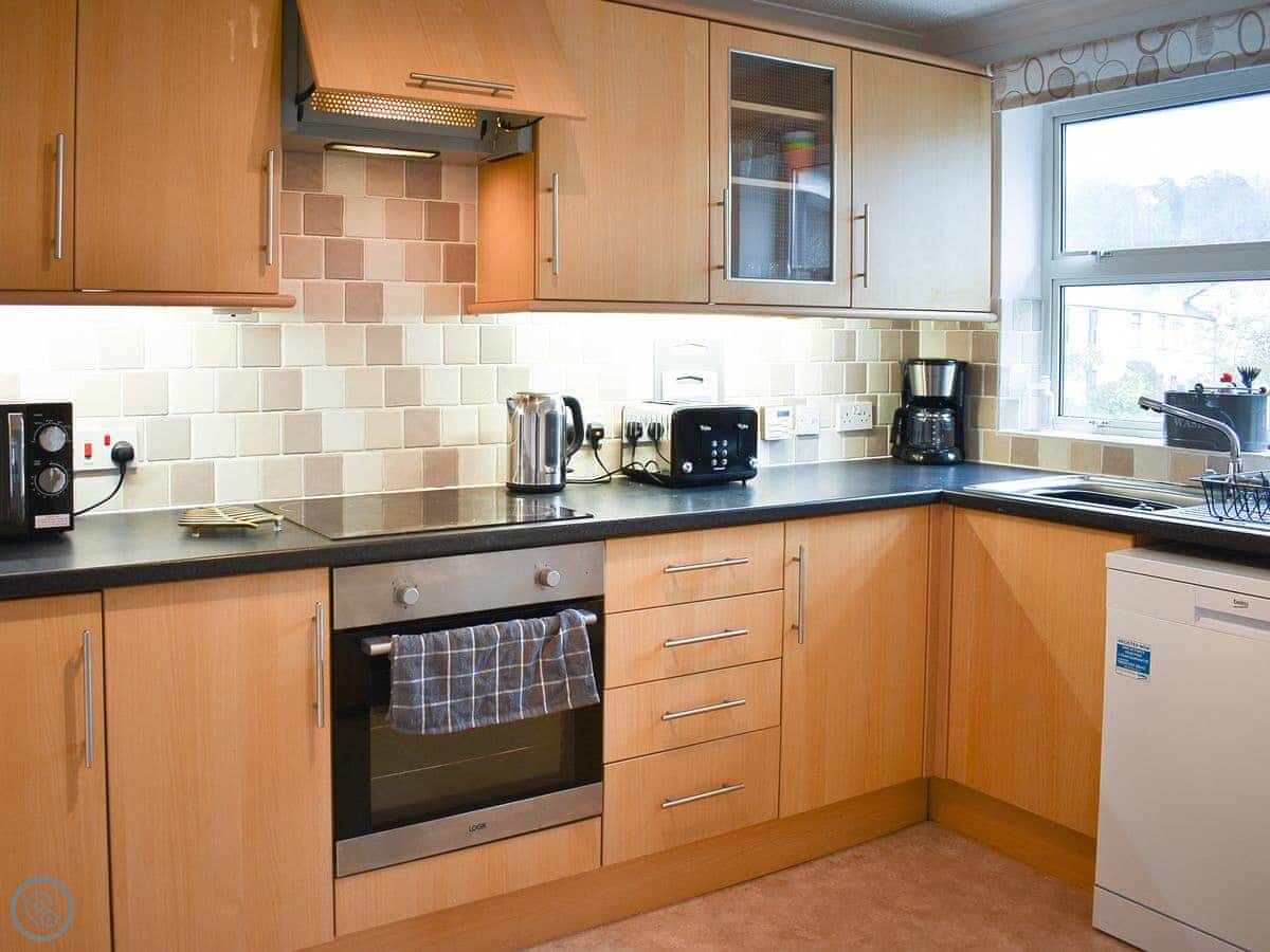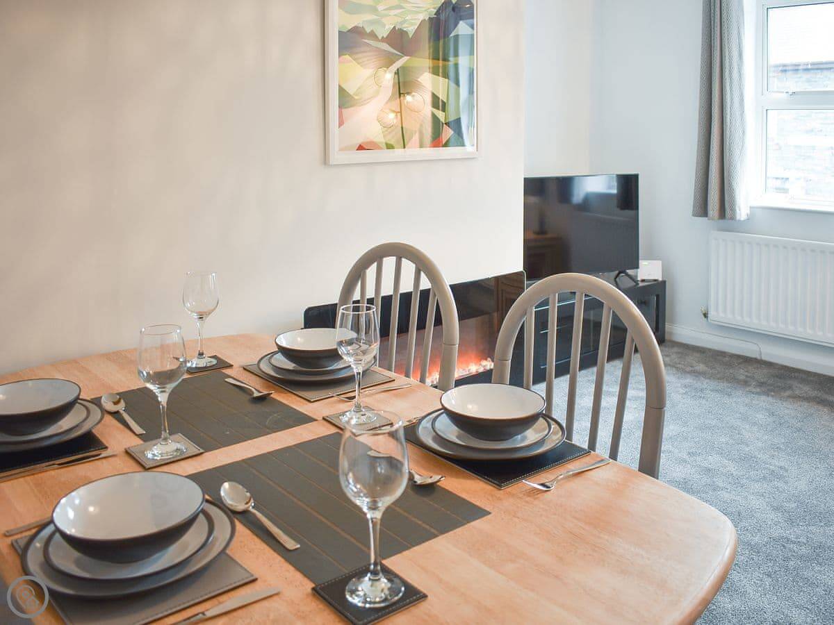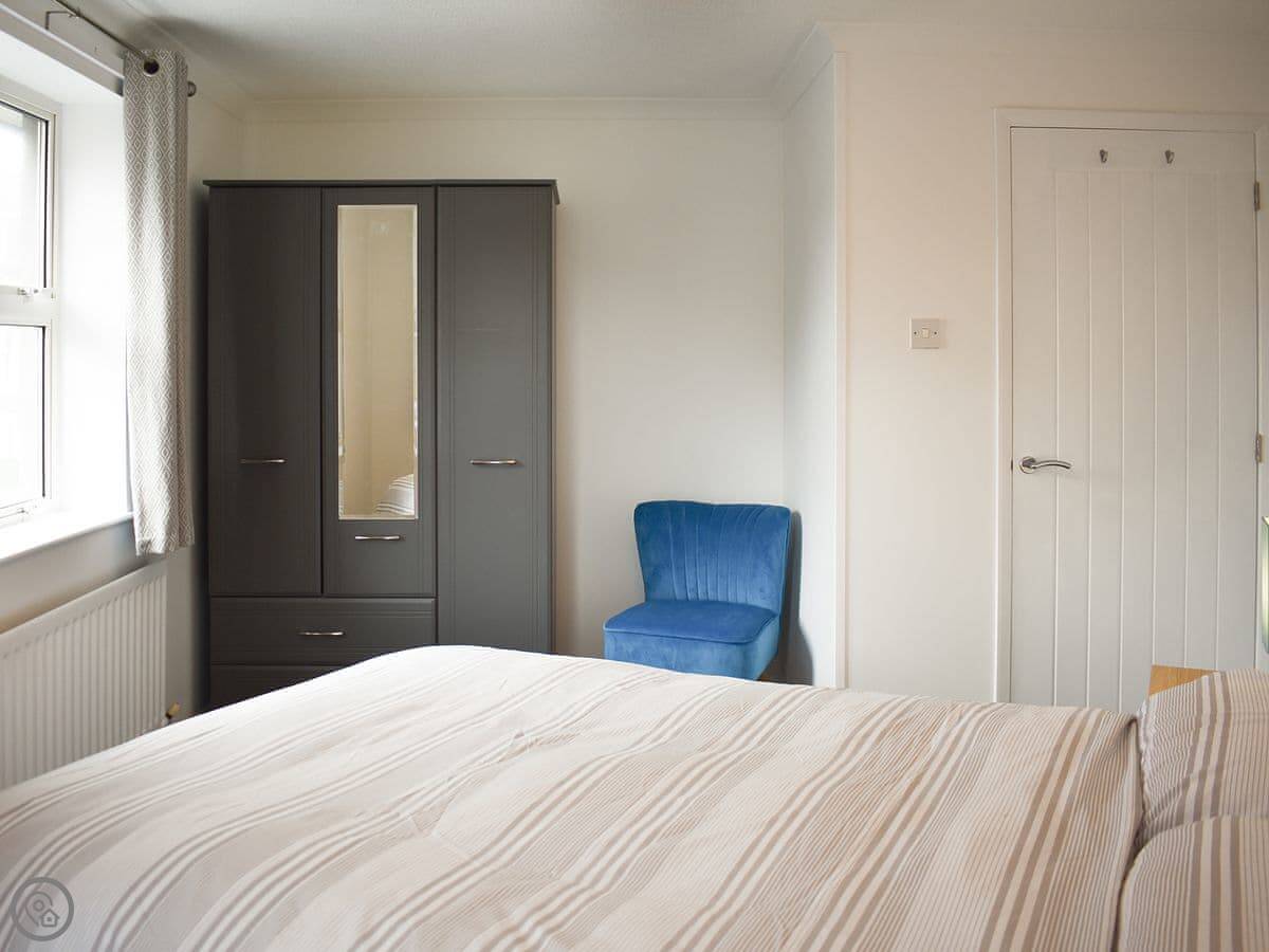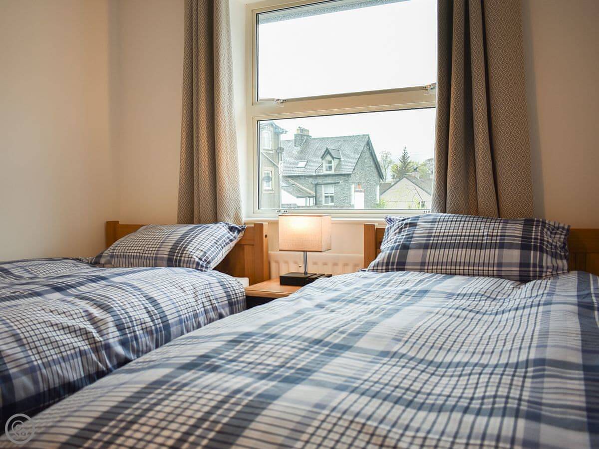 Eskin Den is in Keswick. It's an apartment on a quiet residential street about five minutes walk from the town centre. The walk is flat, which is handy. There are two bedrooms, so it sleeps four. One bathroom. It's a 4 Star place, so it's comfortable and well looked after.