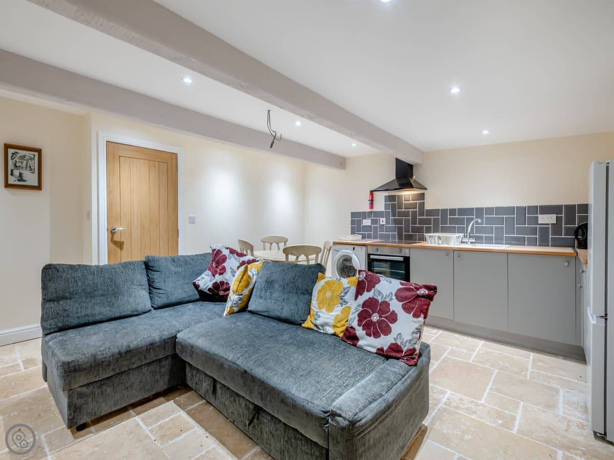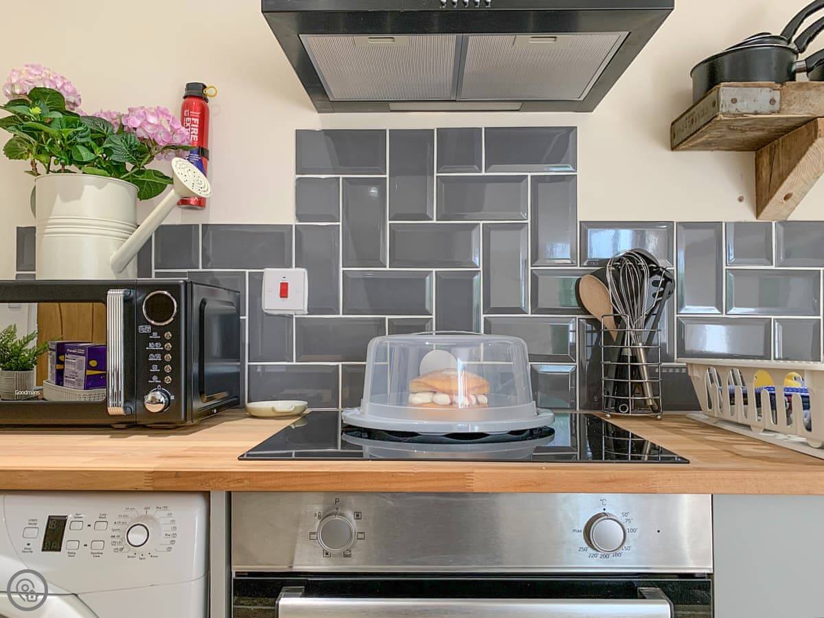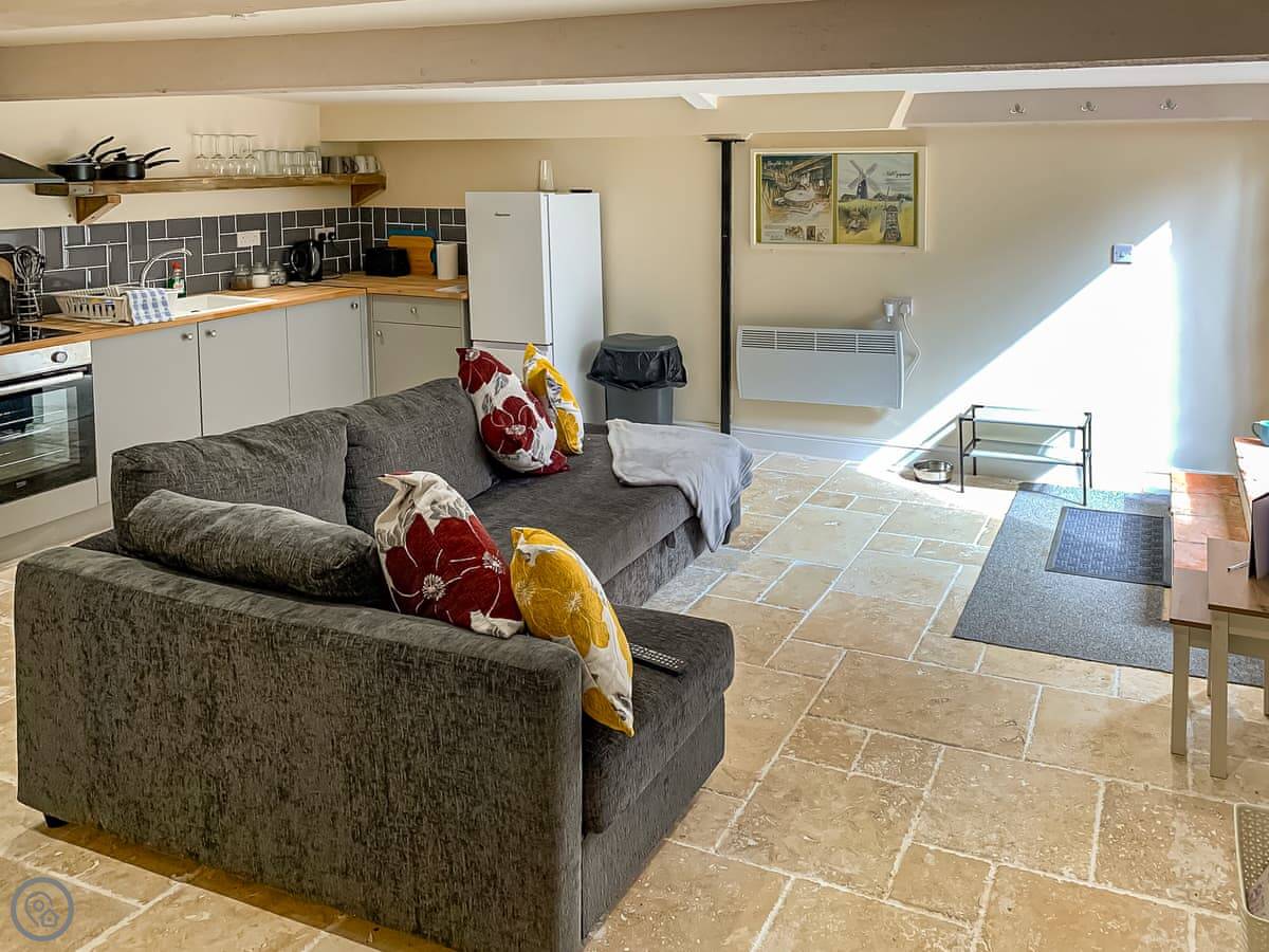 Inside, it's open plan on the ground floor. There's a wood burning stove. All the bedding and towels are included. There's a washing machine, WiFi, and parking. We can provide a highchair.