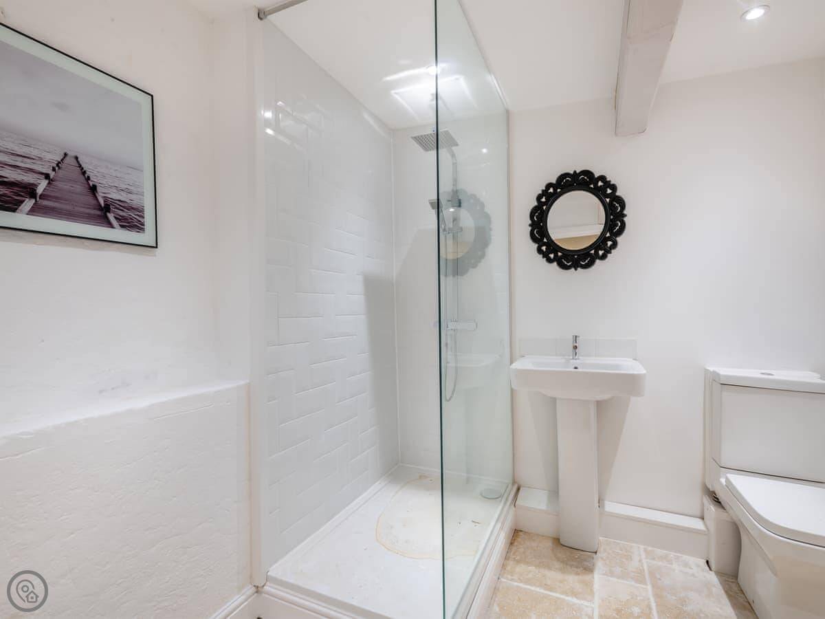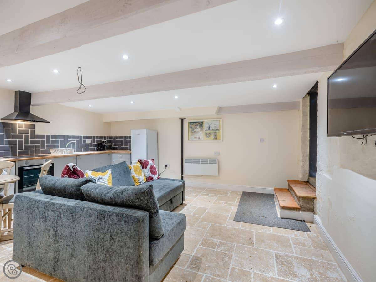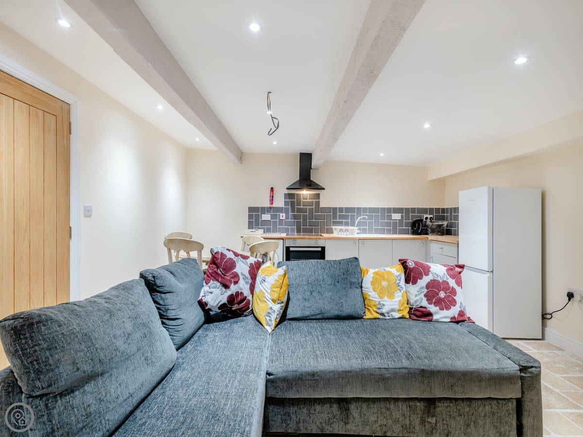 Inside, it's open plan on the ground floor. There's a wood burning stove. All the bedding and towels are included. There's a washing machine, WiFi, and parking. We can provide a highchair.