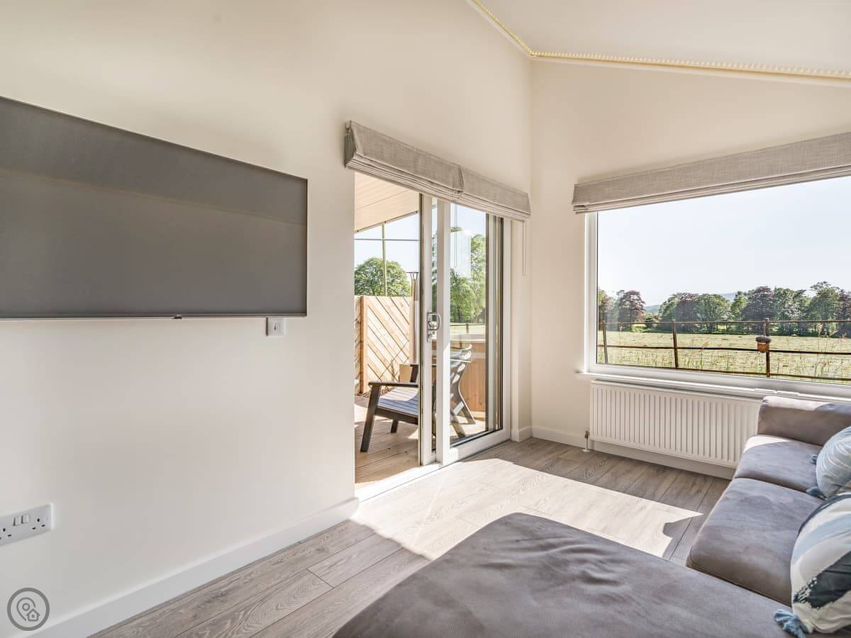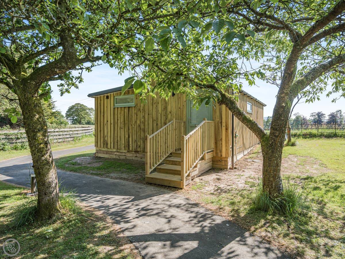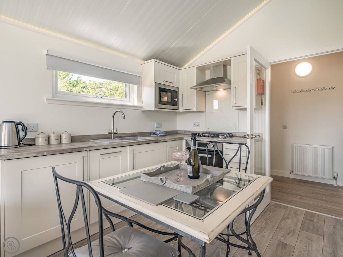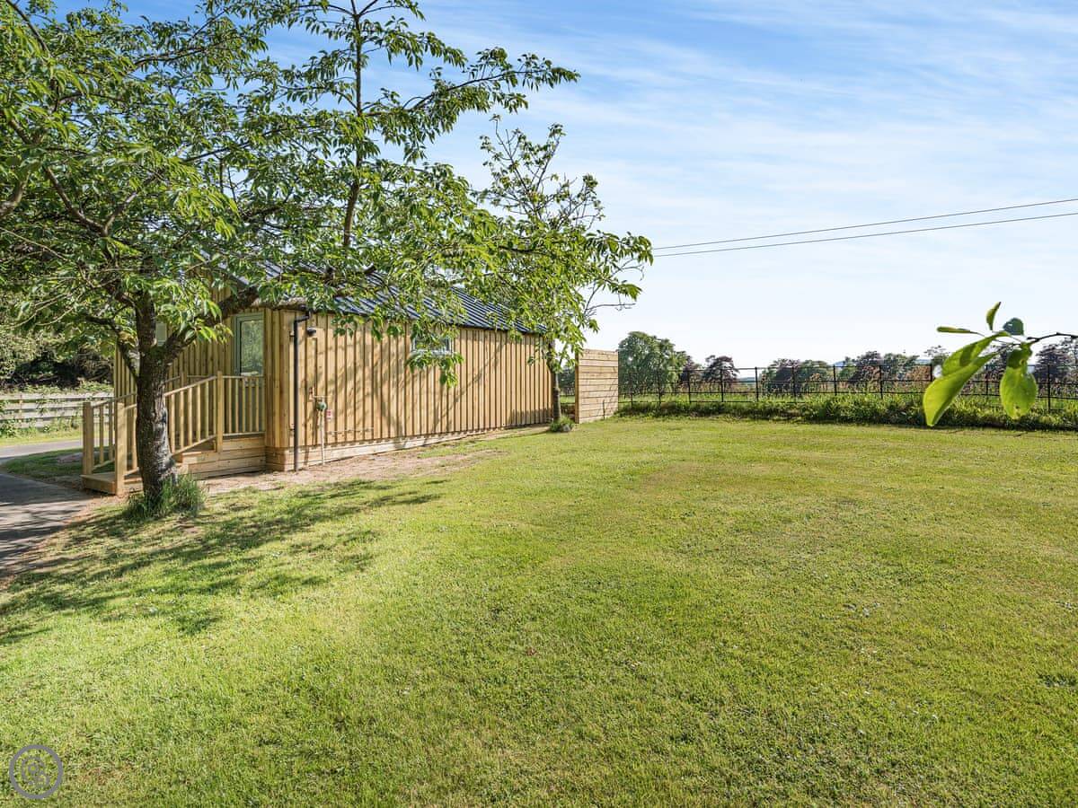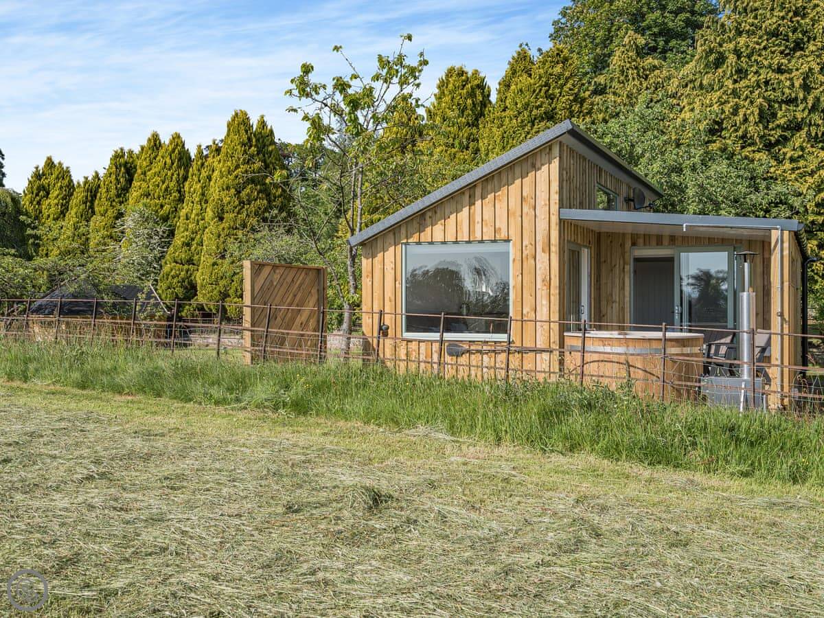 The Nuthatch is a lodge in a place called Woodside, near Dumfries. It's new, detached, and sits in a quiet spot with a few other lodges in an orchard. Sleeps two, one bedroom, one shower room. It's got a 4 Star rating, so it's well equipped and comfortable.