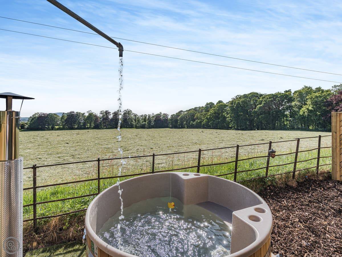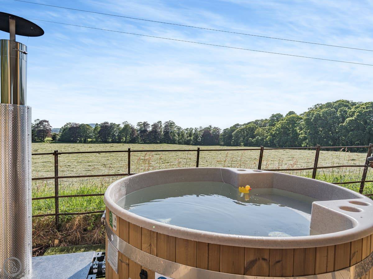 The main thing is the wood-fired hot tub on the deck. You have to light it and wait for it to heat up, but it's private. It's good at night because there's not much light pollution round here.