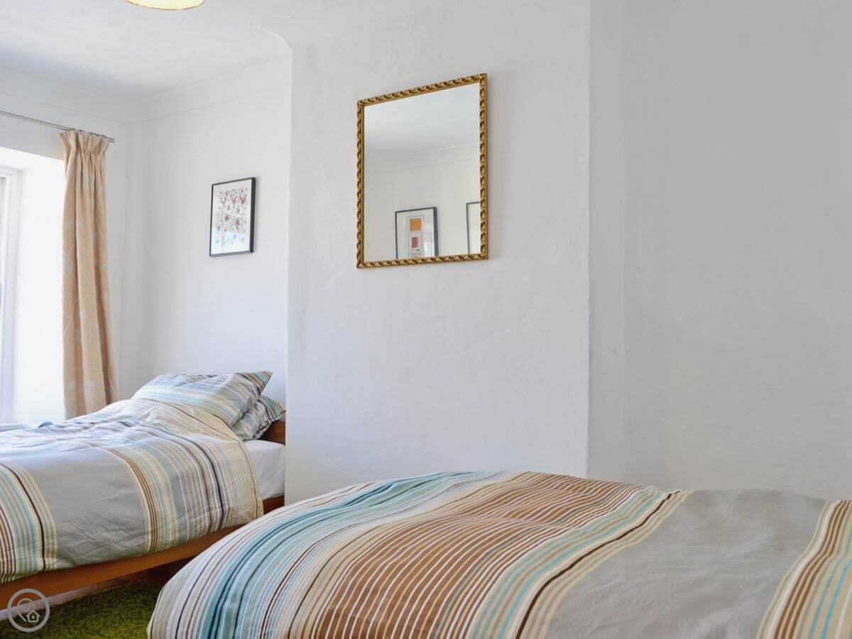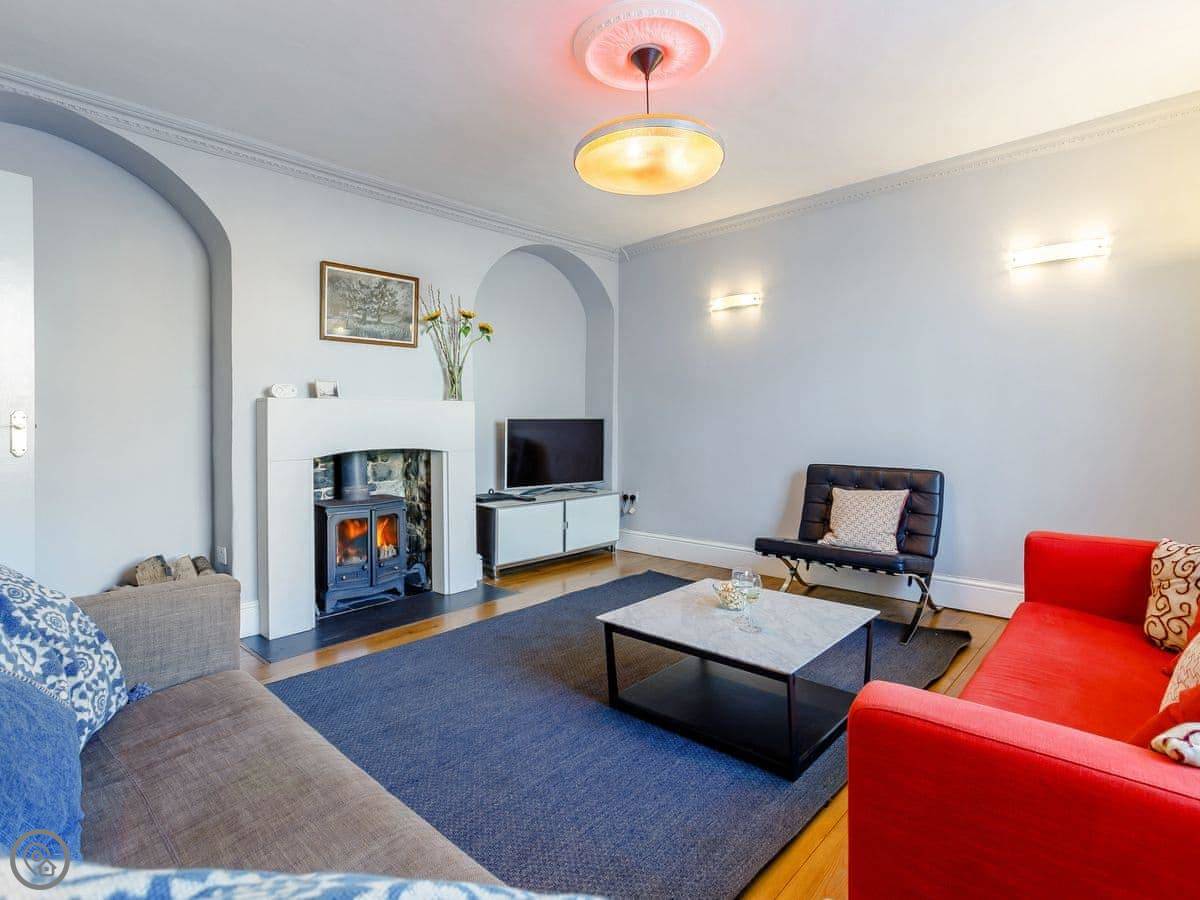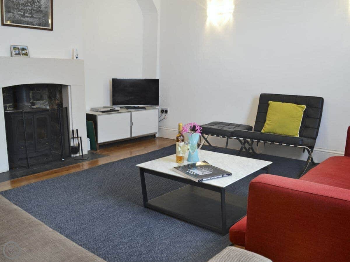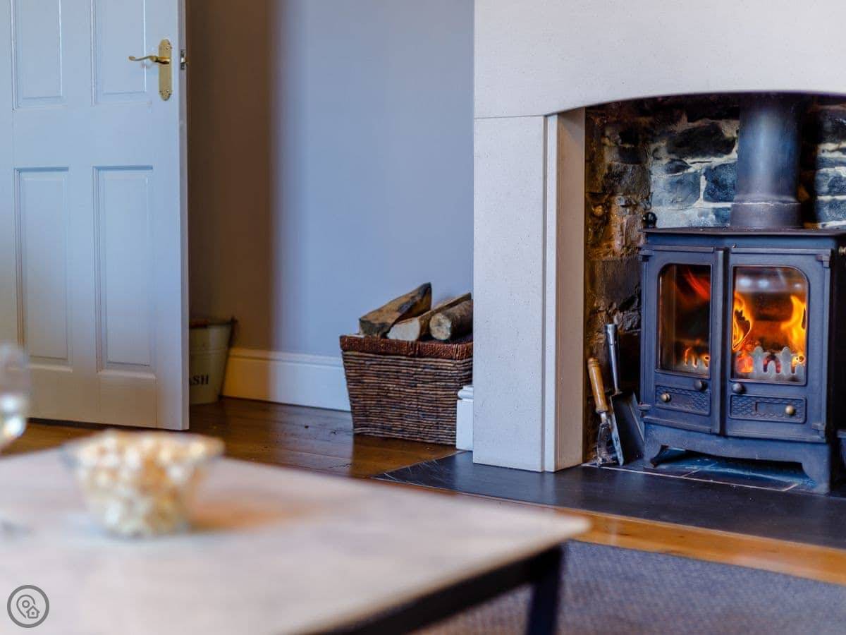 It sleeps six in three bedrooms. One bathroom. It's got a 4 Star rating. There’s a wood burner in the living room, which is decent sized. The stairs are fairly standard.