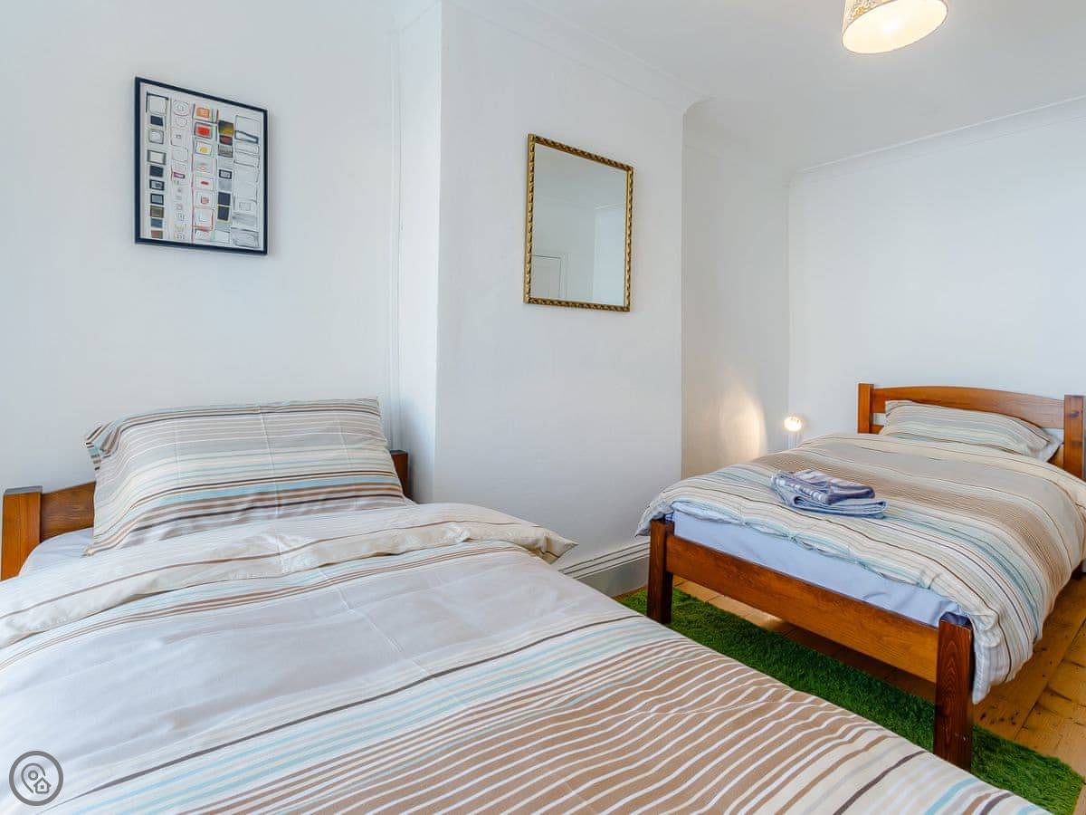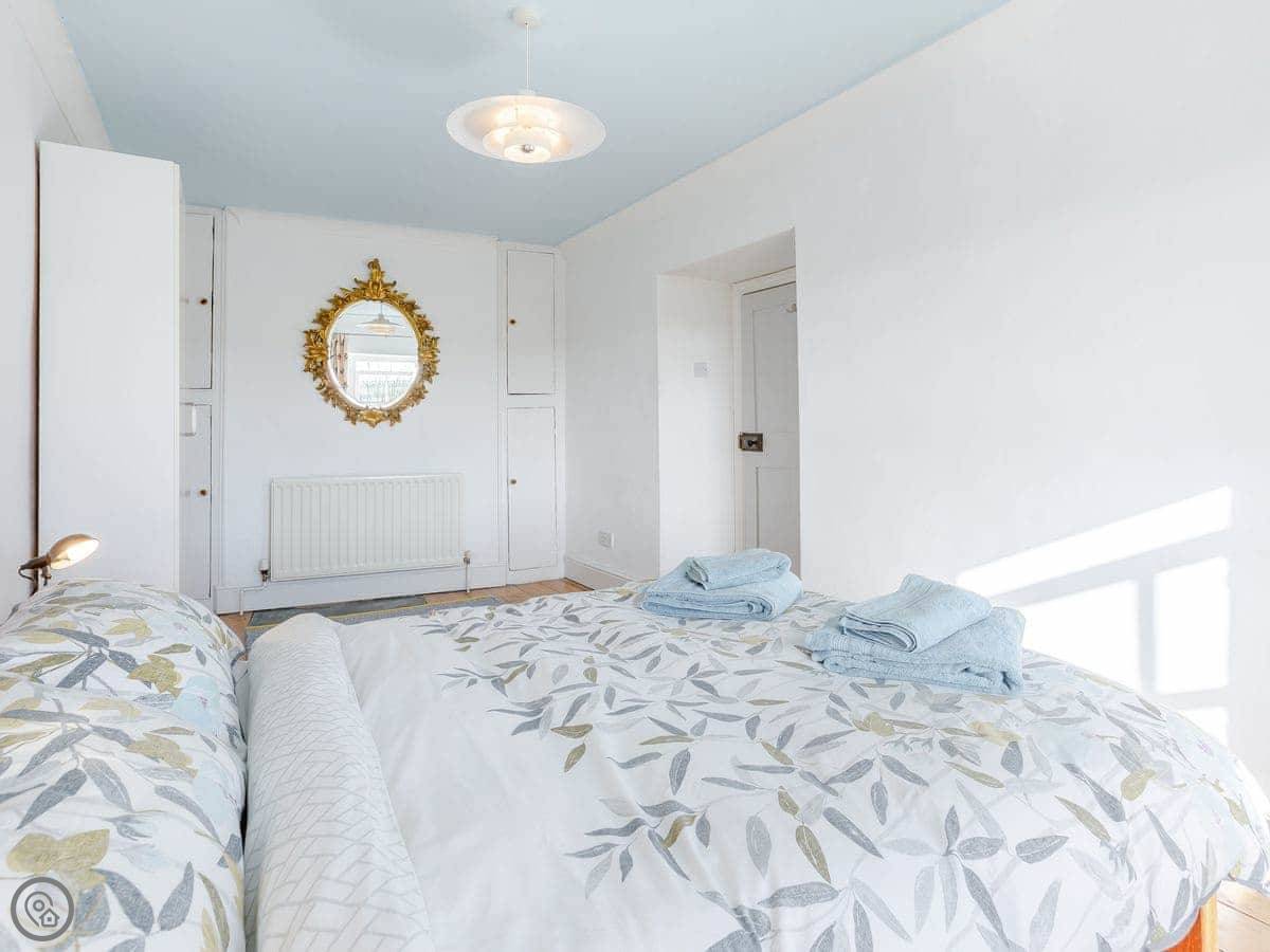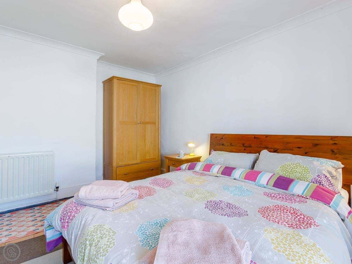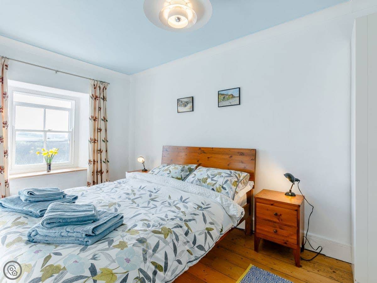 It sleeps six in three bedrooms. One bathroom. It's got a 4 Star rating. There’s a wood burner in the living room, which is decent sized. The stairs are fairly standard.