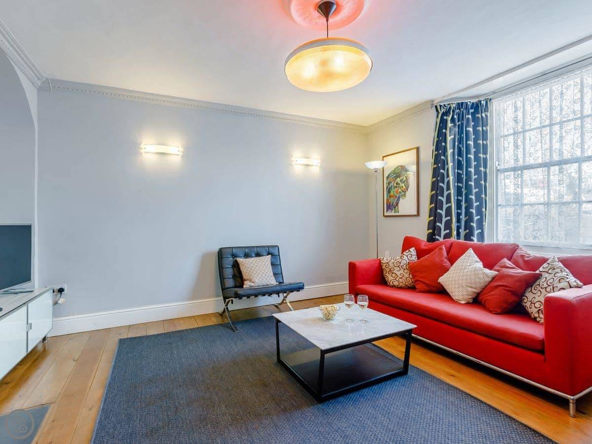 In terms of facilities, it's got a washing machine, dishwasher, TV, WiFi. There's a cot and highchair if you need them. Bedding and towels are included. There's parking on the square.