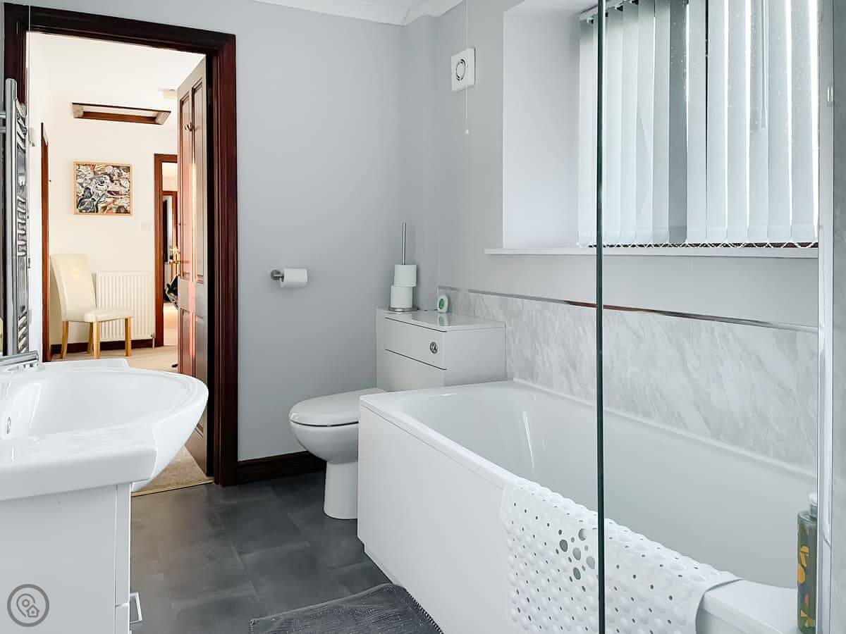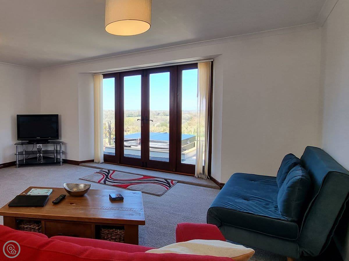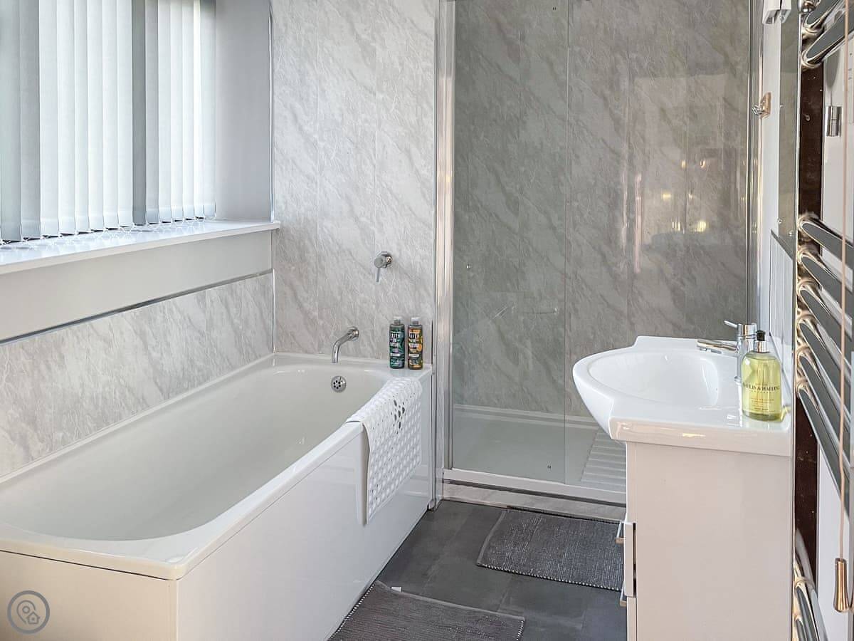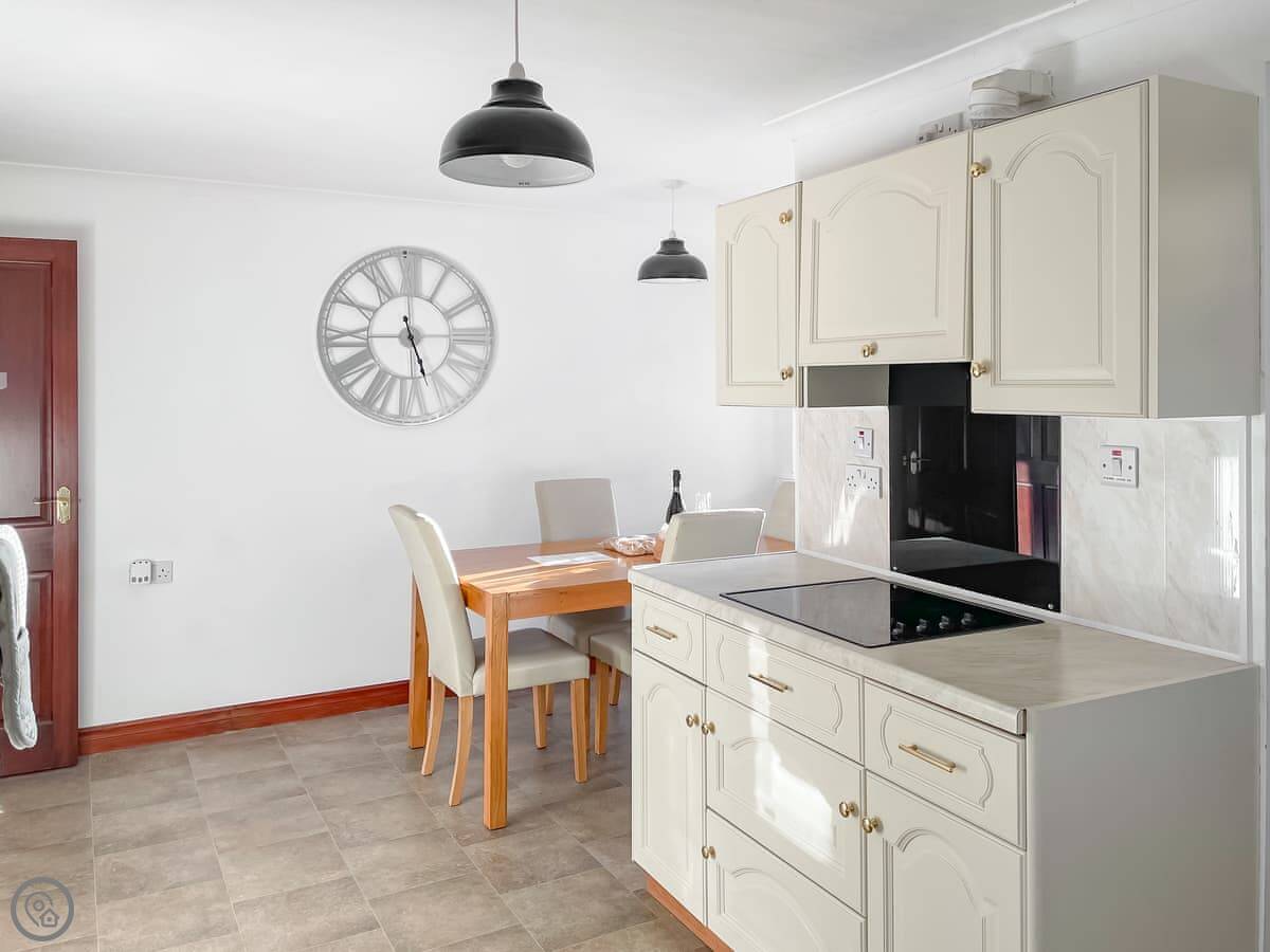 It sleeps four. Two bedrooms, one bathroom. It's got a 4 Star rating. We refurbished it in 2024 so it's all fresh. There's underfloor heating and a woodburner-style electric fire in the living room.