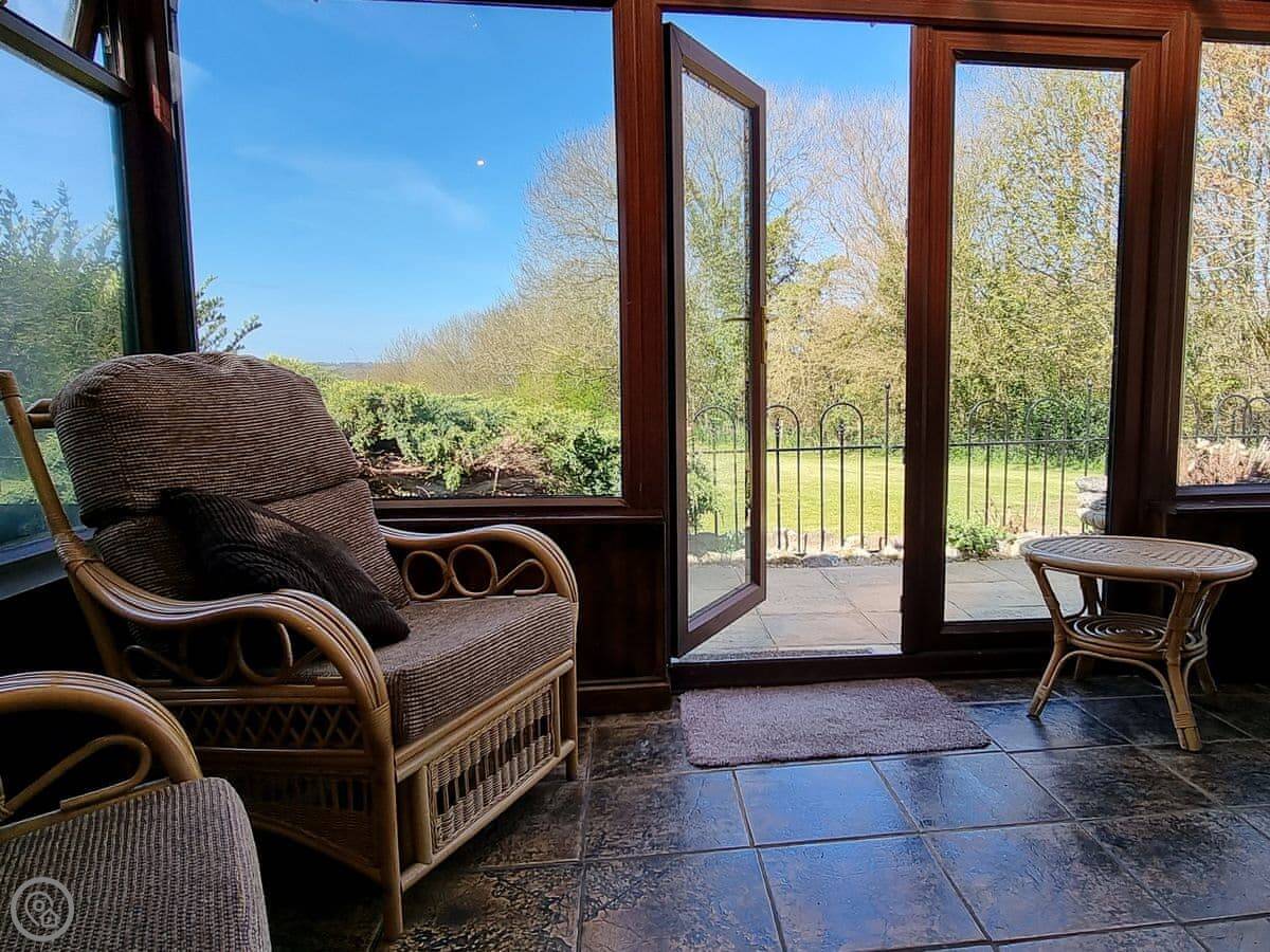 Holgates is near Smeatharpe, on the Devon and Somerset border. It's a detached bungalow, so everything's on one level. You come in through the conservatory.