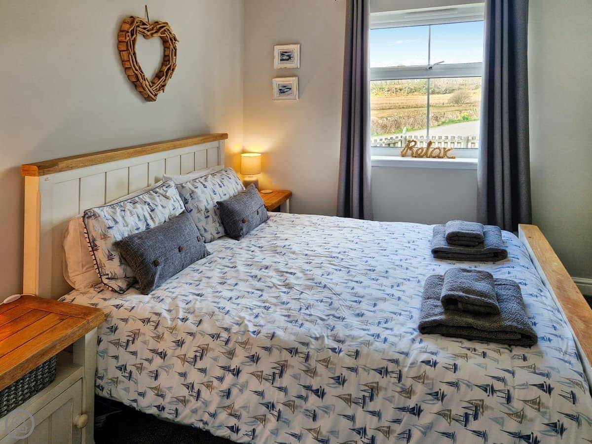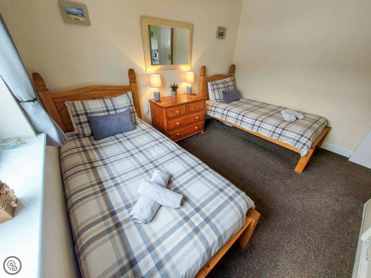 It sleeps four. Two bedrooms and one bathroom. It's a 4 Star place, so it's comfortable and well-equipped. Everything is on one level, which is handy. The doorways are wide and there's a ramp to the front door, so it's accessible if you need that.