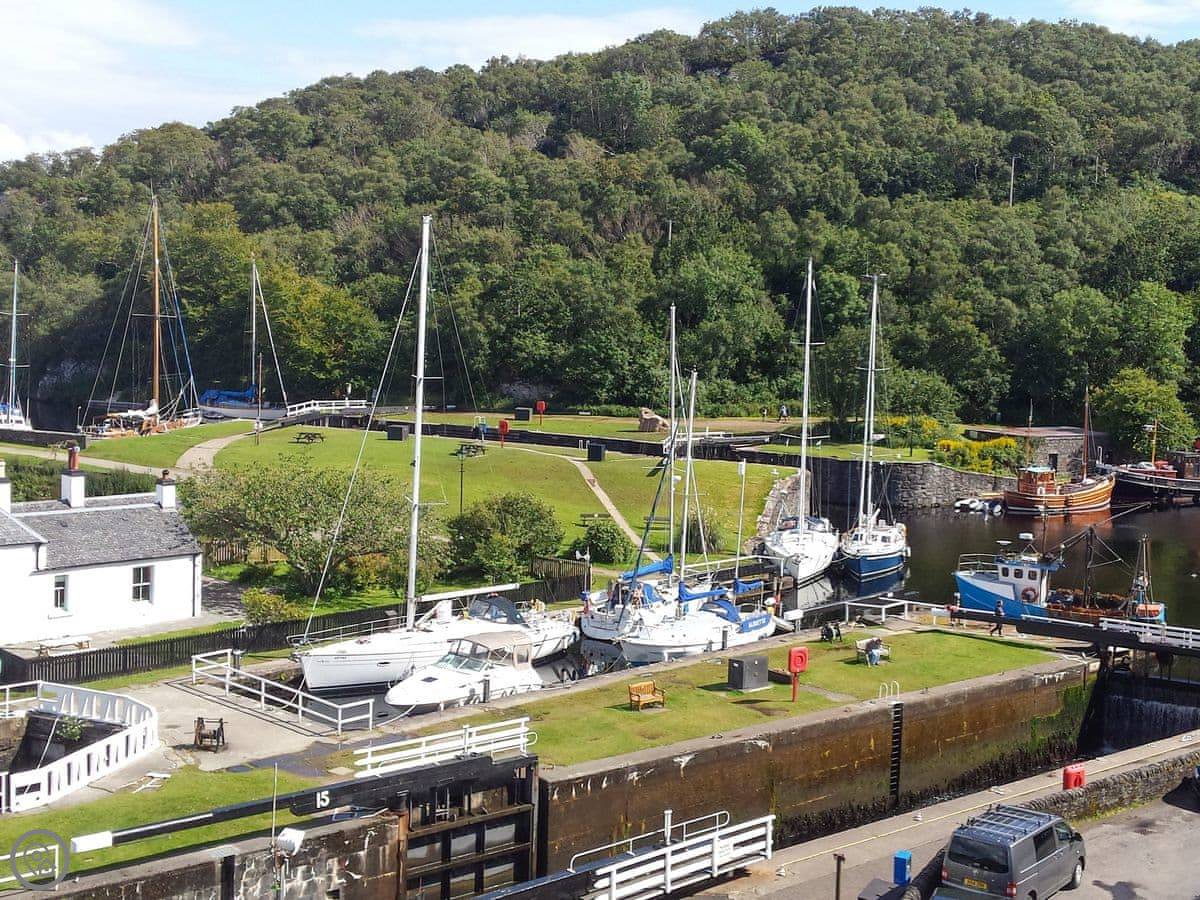 The Crinan Canal is about eight miles away. You can drive or walk the towpath. There are boat trips from Crinan harbour where you might see seals or eagles. Lochgilphead is a twelve-mile drive for bigger shops and a swimming pool.