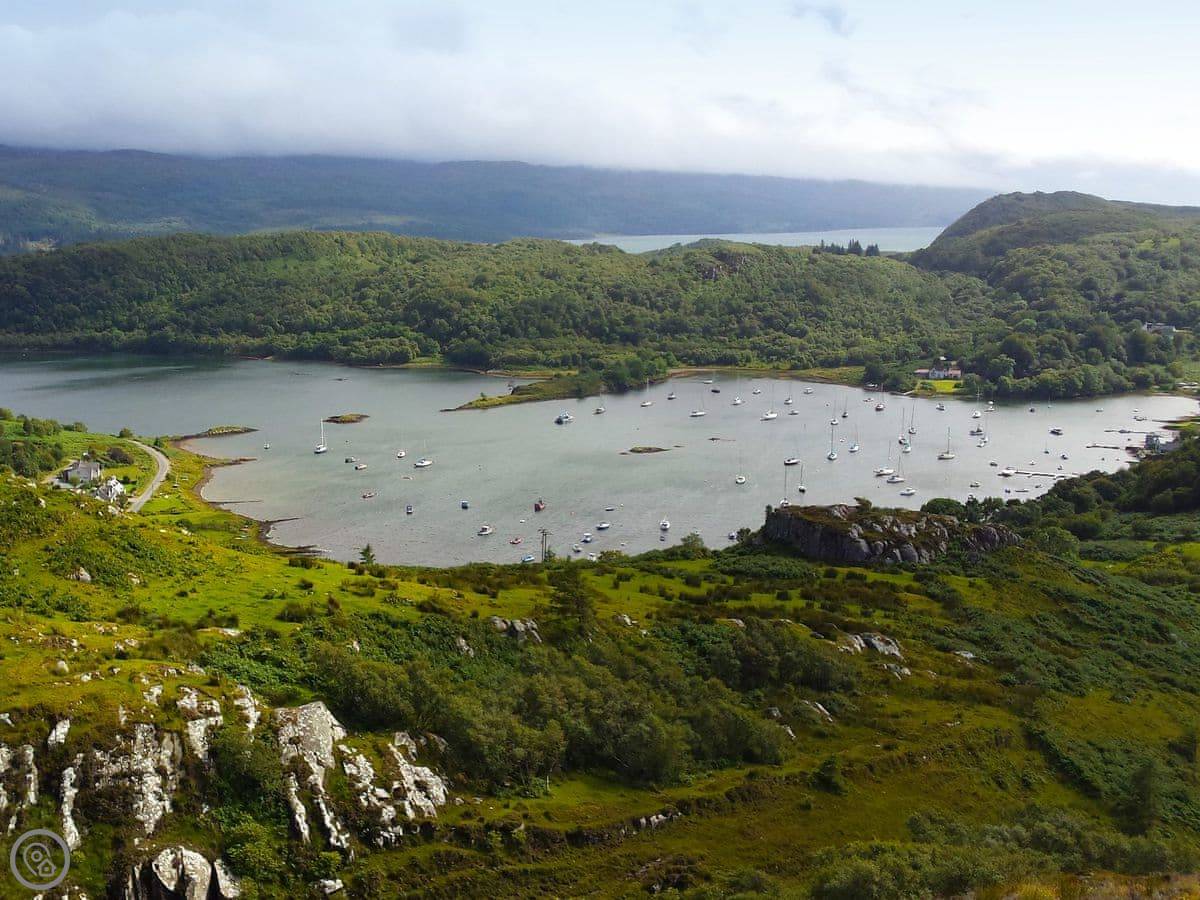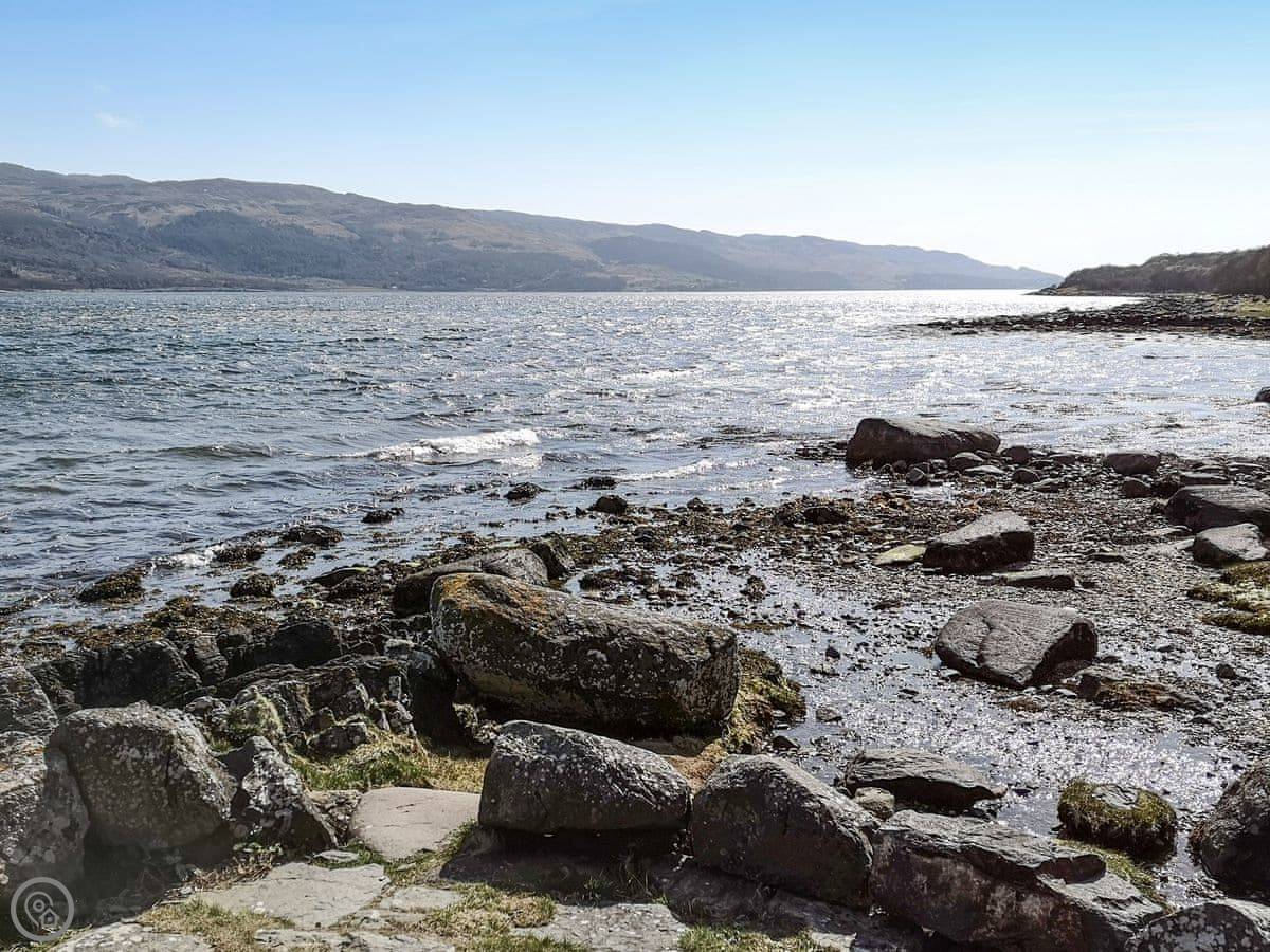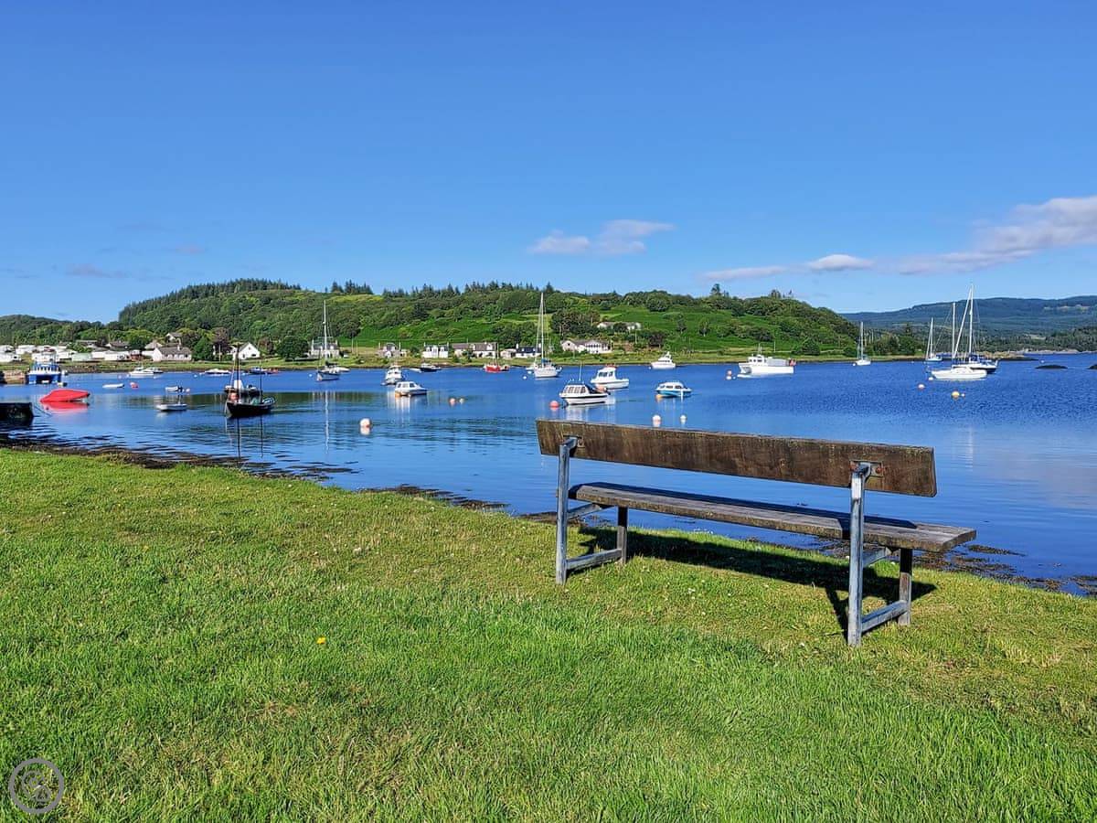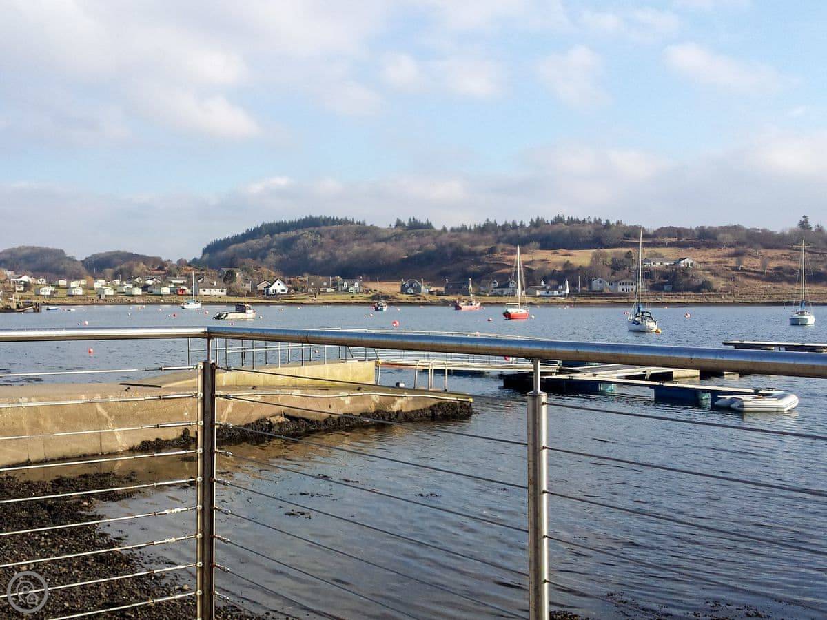 The village is a couple of minutes' walk away. There's a shop with a post office, a pub, and a coffee shop. The pub does food. The harbour is right there. It's a sheltered spot, good for launching kayaks or just watching the boats.