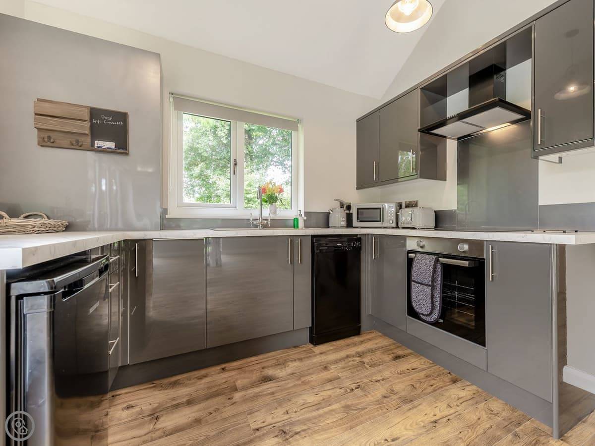 Facilities wise: there's a dishwasher, parking right by the lodge, WiFi, and TV. Bedding and towels are included. If you need a cot or highchair, just ask.