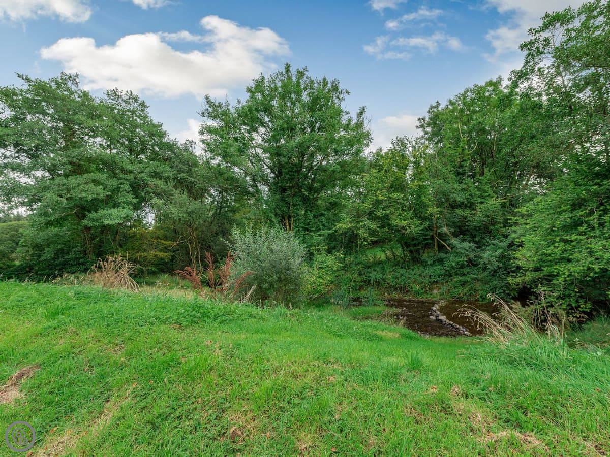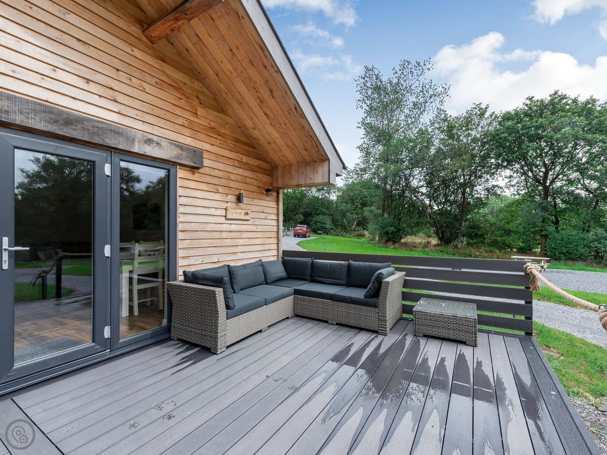 Dwrgi is a lodge on our farm, just outside the village of Cwrtnewydd. It's cedar-clad and detached, so you're on your own. It looks out over a paddock and there's a little brook that runs along the bottom of the field.