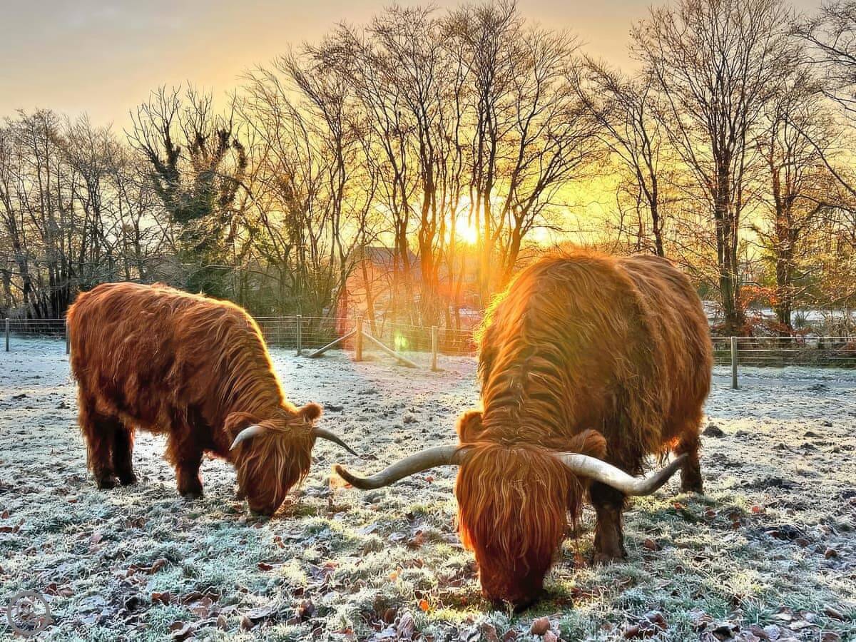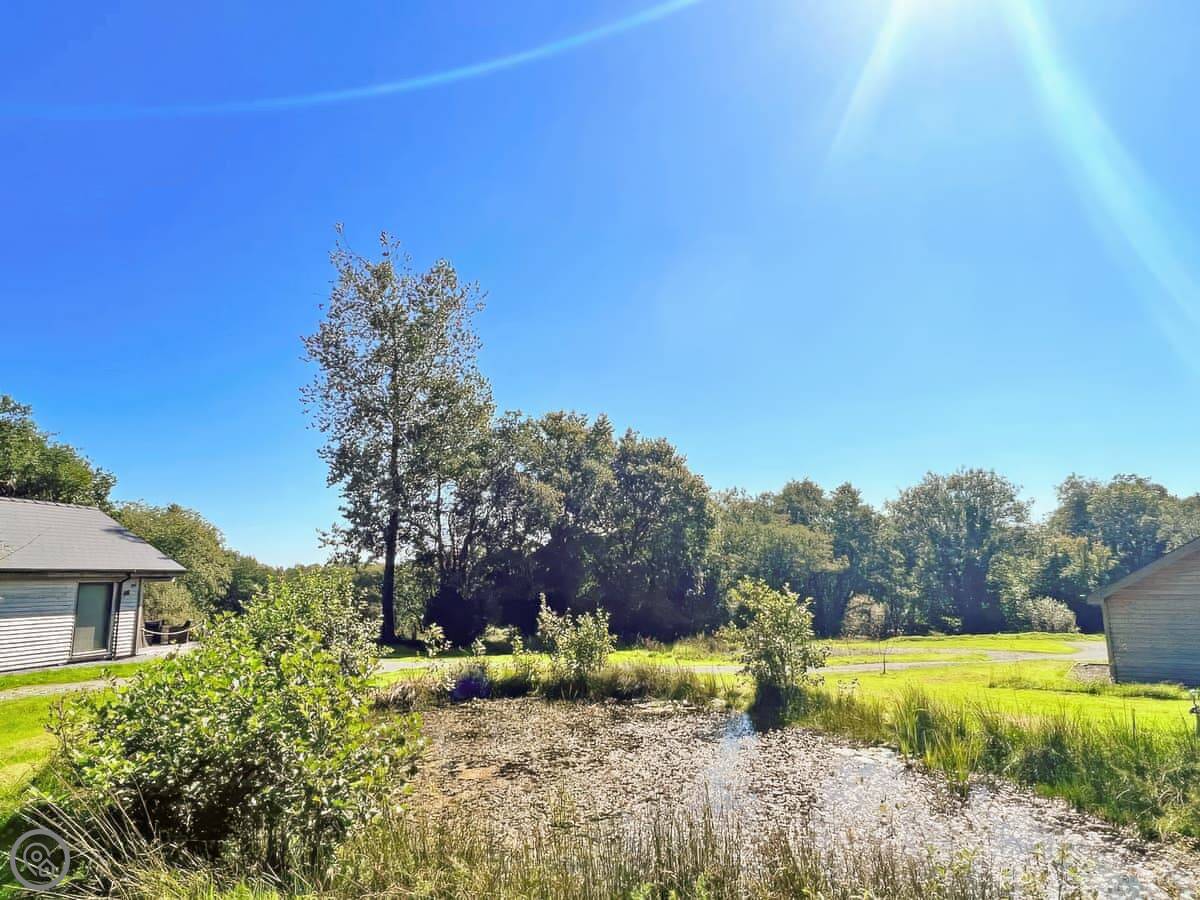 You're welcome to come and see the farm animals. We've got ponies, pigs, and donkeys. There's a small play area for children where you can keep an eye on them from the lodge. There's also a wildlife pond on the site with newts and frogs.