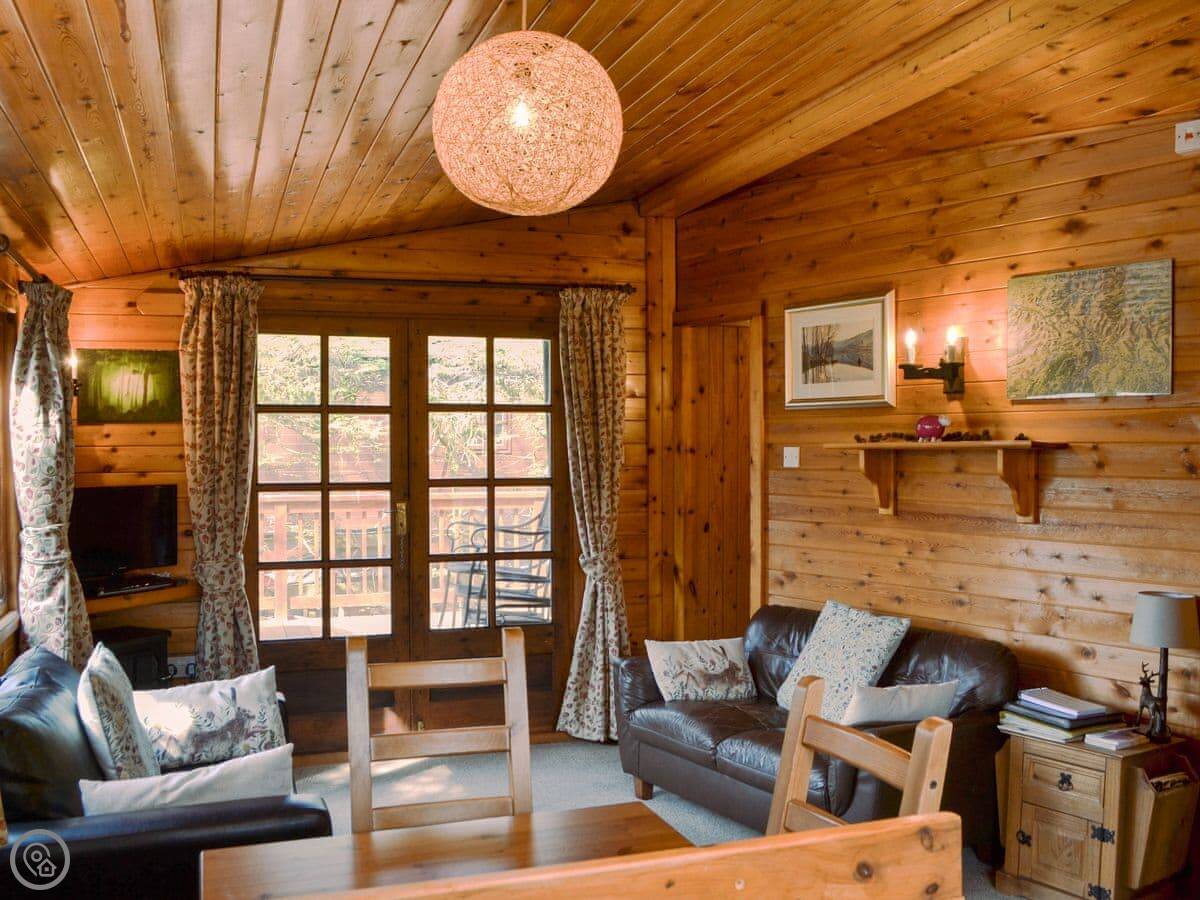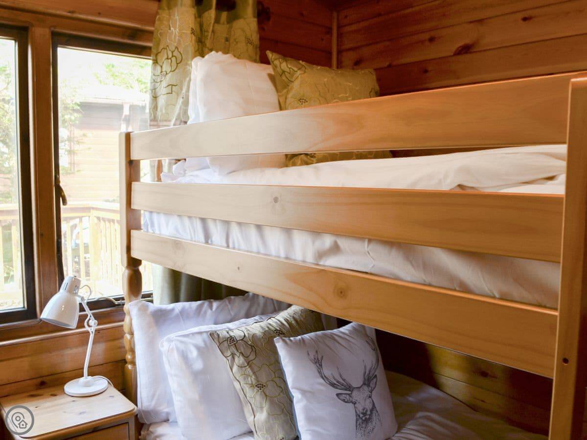 This traditional style lodge has everything you need for an enjoyable holiday. The open plan living room/diner and kitchen are tastefully furnished with comfortable easy seating. The kitchen is well equipped and provides good cooking facilities and plenty of storage. There are two small bedrooms, one with a double bed and one with bunk beds. Patio doors from the kitchen lead to a spacious, enclosed decked area at the rear complete with patio furniture.