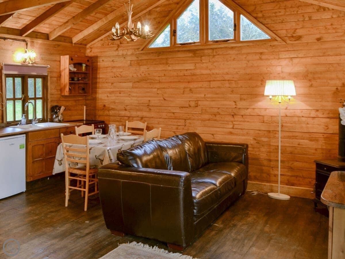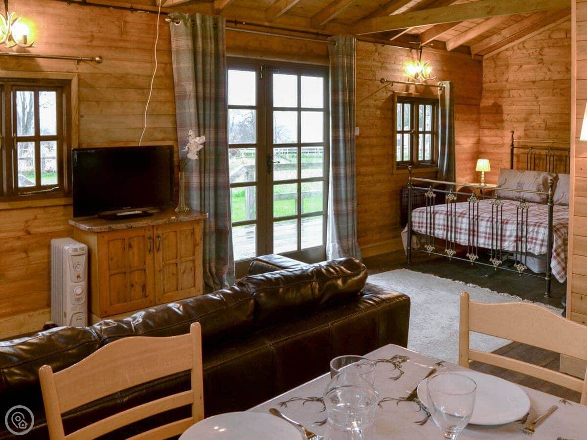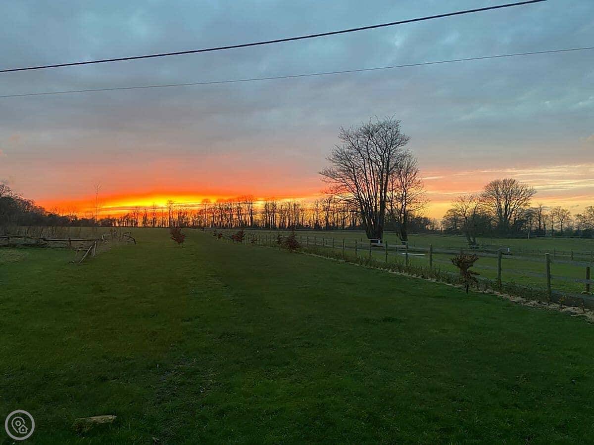 The Sunset Cabin is a pine log cabin a mile outside Beccles. It's detached. The main thing is the view, it looks out across the Waveney Valley. It's very quiet.