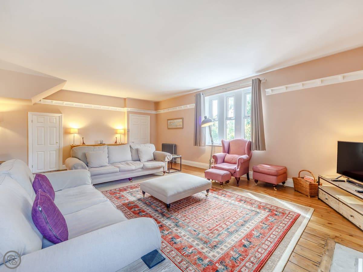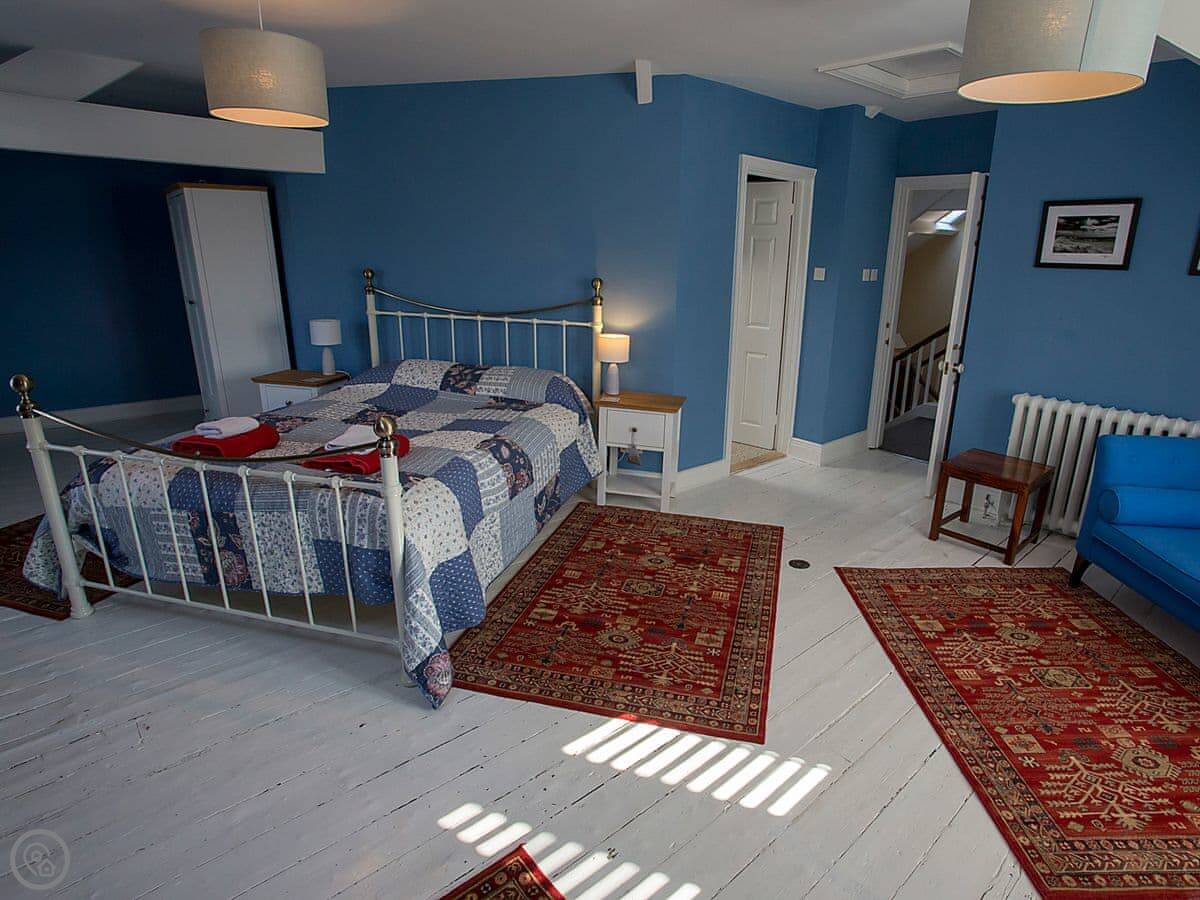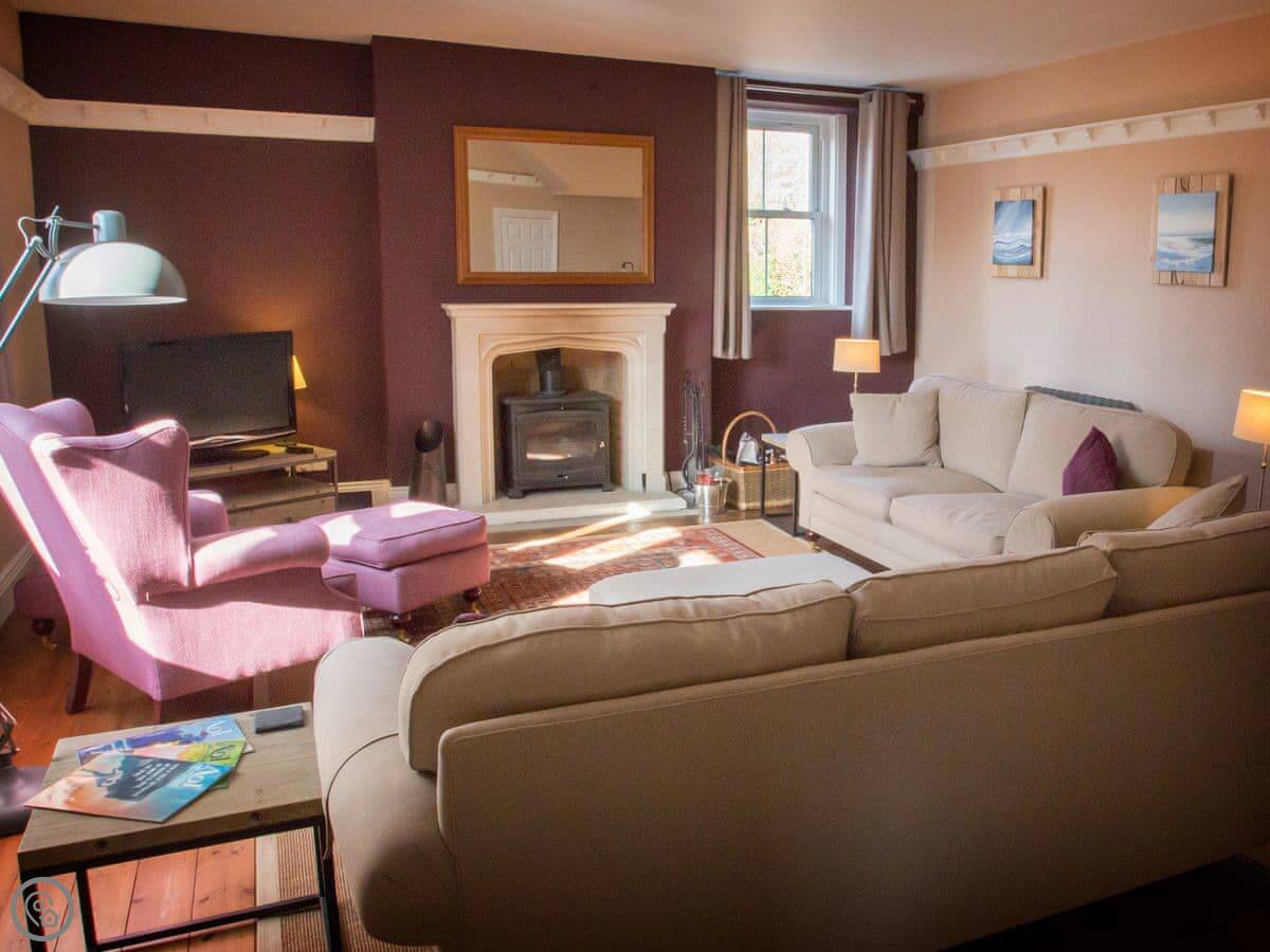 The Old Reading Room oozes character and charm throughout its spacious rooms. Retaining many features of the historic past, including beams and stripped wood floors, it is bursting with elegance and makes the perfect holiday home to gather with friends, family or for an amazing getaway. The beautiful and impressively spacious living room has a feature fireplace housing an attractive wood burner, with period plate shelving around all the walls, currently used as storage for books. This is a delightful room and the hub of the home. The individually designed, bespoke, statement country kitchen has been custom made by a local kitchen maker, and has granite and solid wood worktops as well as a large island and butler sink. A fabulous wide central staircase with polished timber handrails lead to first floor landing with two skylights providing oodles of natural light and the exposed beams accentuate the historic nature of this gorgeous home.