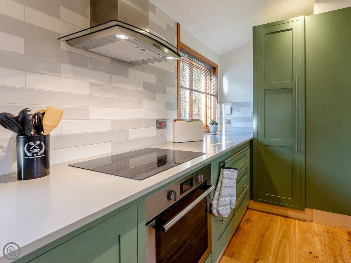 Inside, there's a washing machine, a dishwasher, WiFi, and towels are provided. There's a cot and a highchair if you need them.