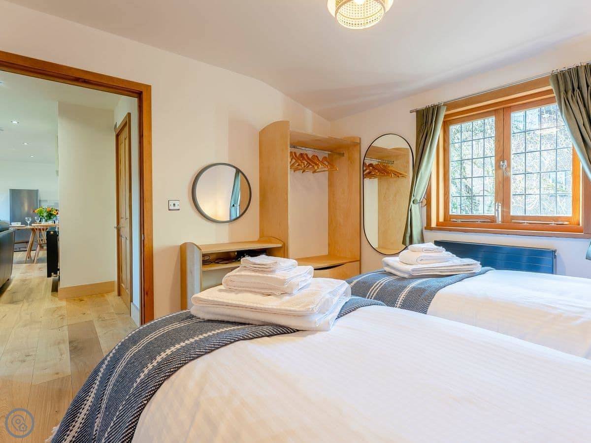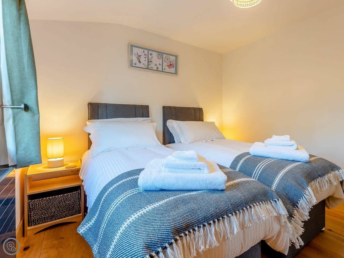 It sleeps four. Two bedrooms, both on the ground floor, and one bathroom. Everything is on one level, so no stairs. The living area is open plan. It's got a 5 Star rating, which means it's well-equipped and in very good condition.