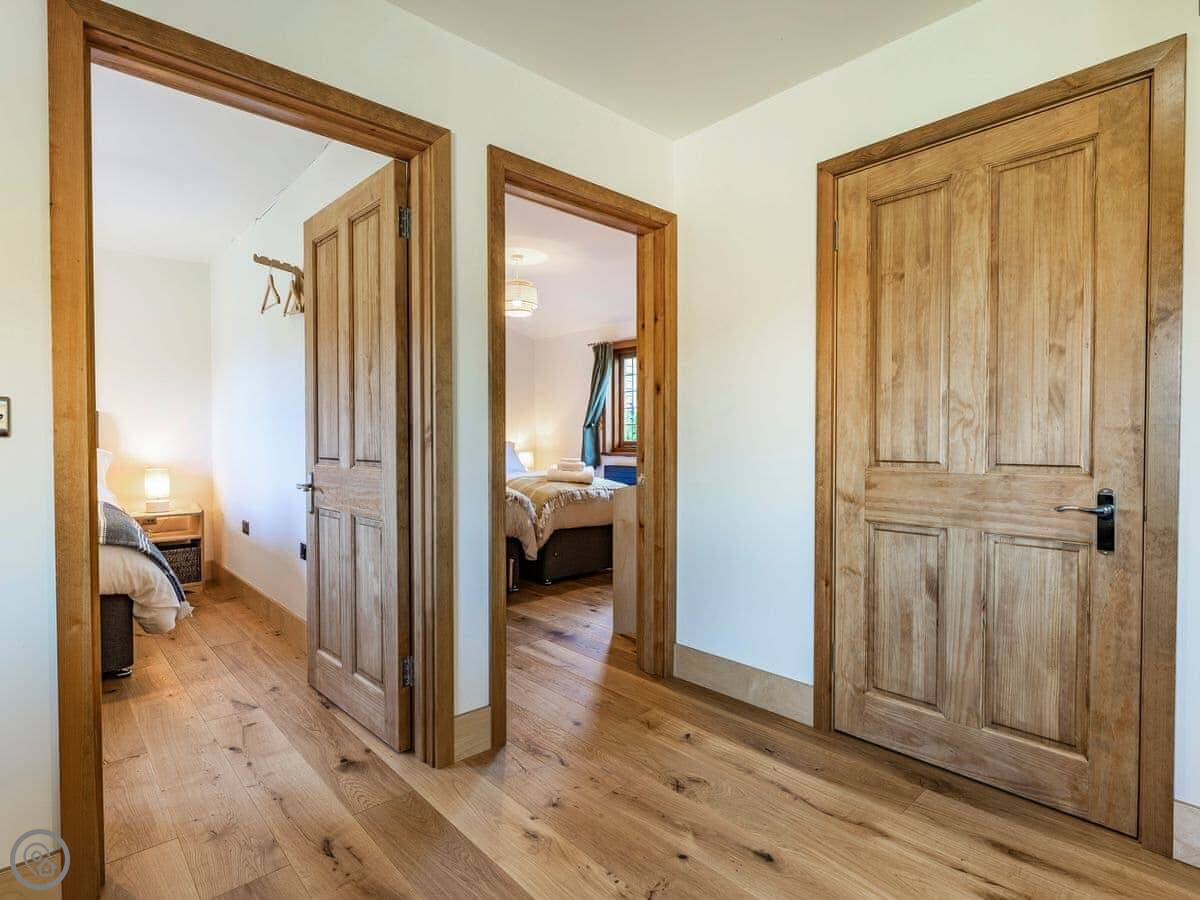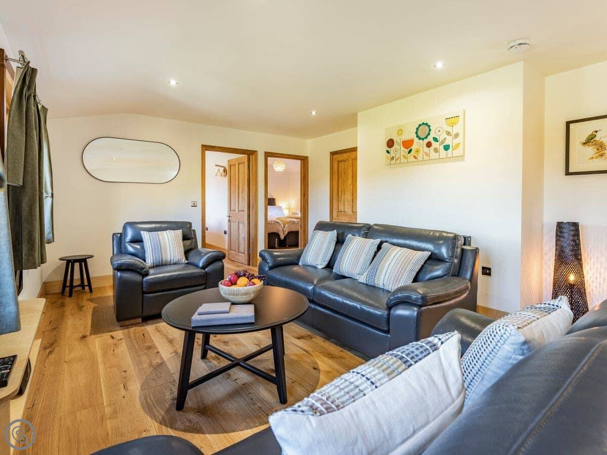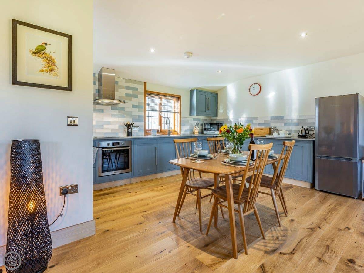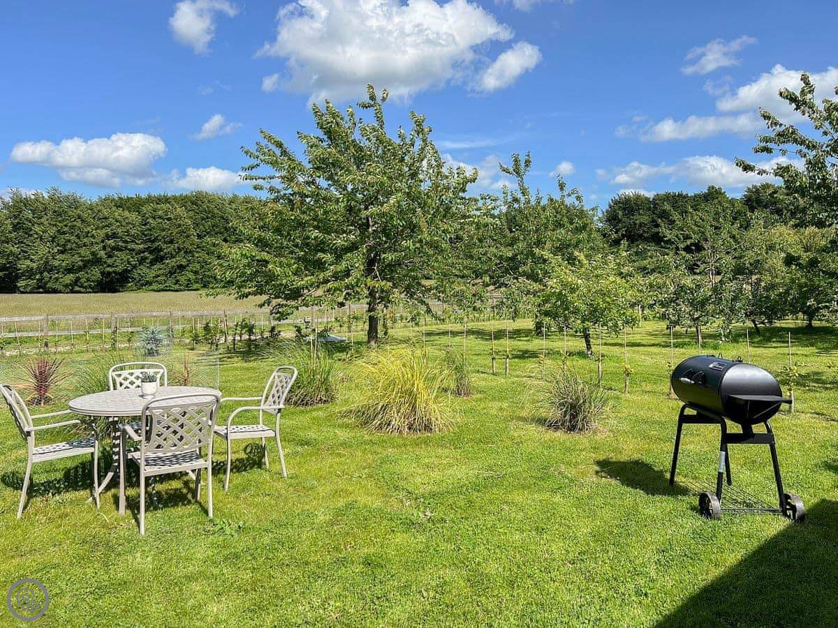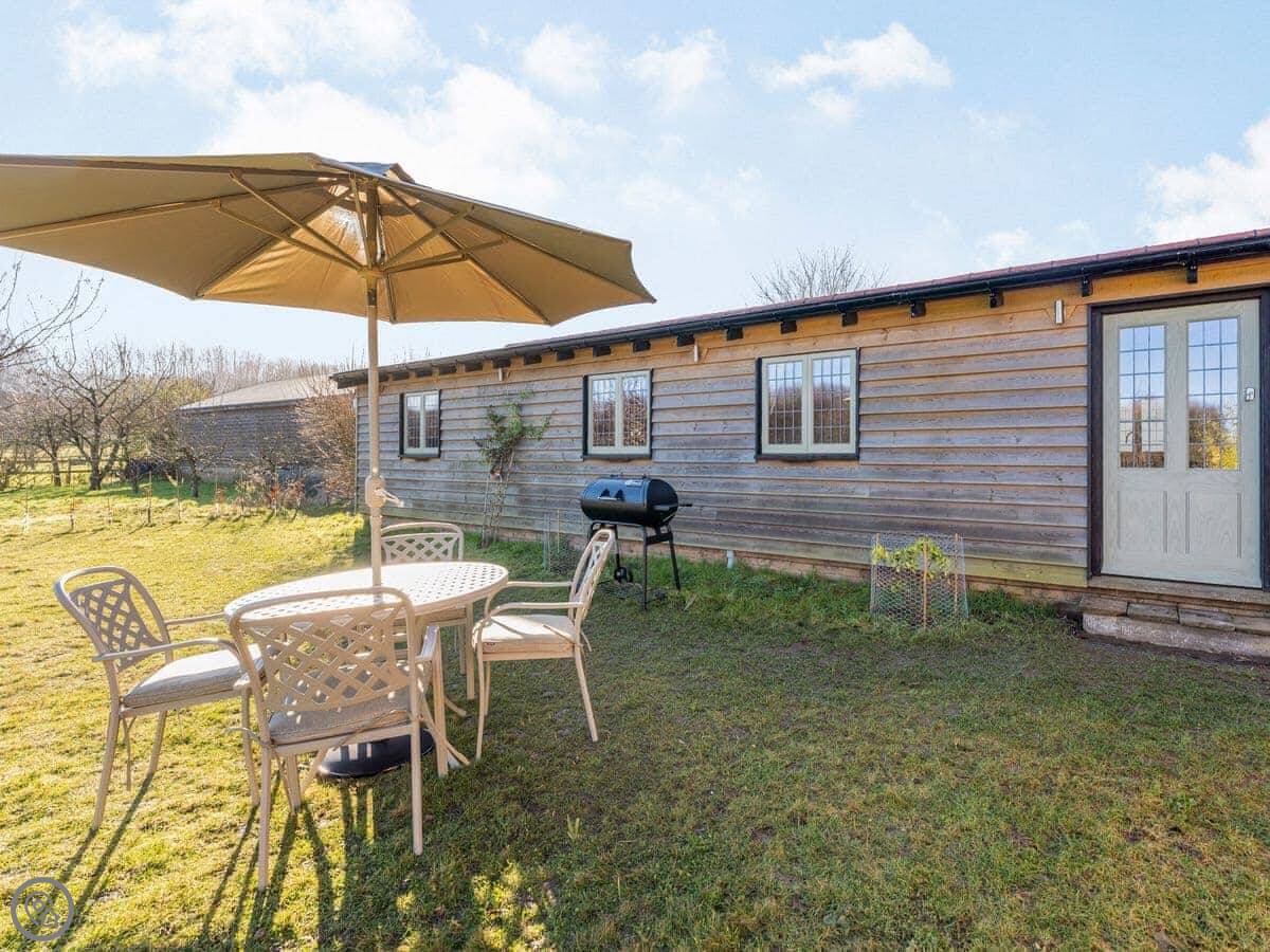 Snowdrop Lodge is in Challock, Kent. It's a new lodge, built in 2021. It's part of a pair with Bluebell Lodge, so you can book both if you need space for eight.