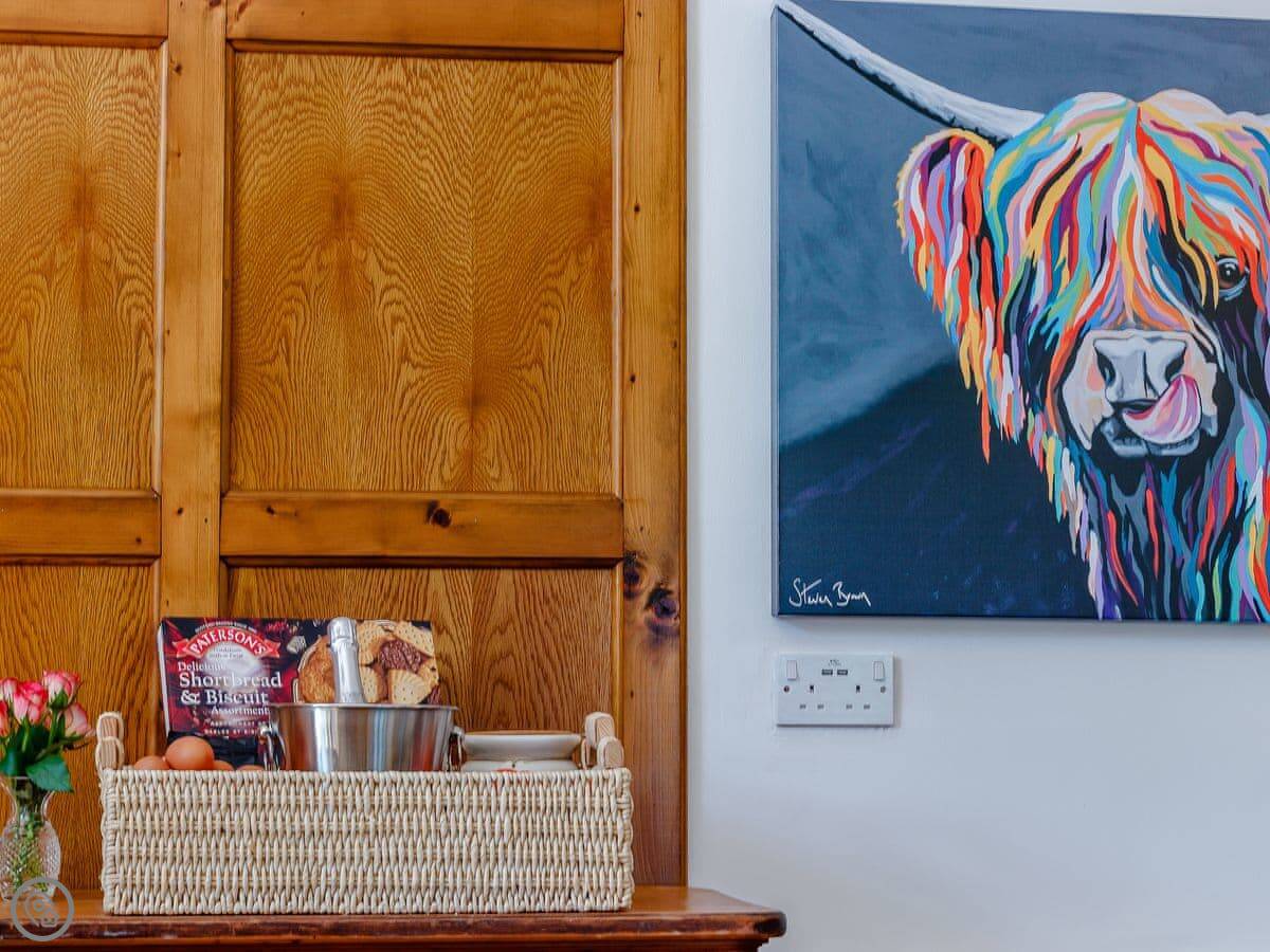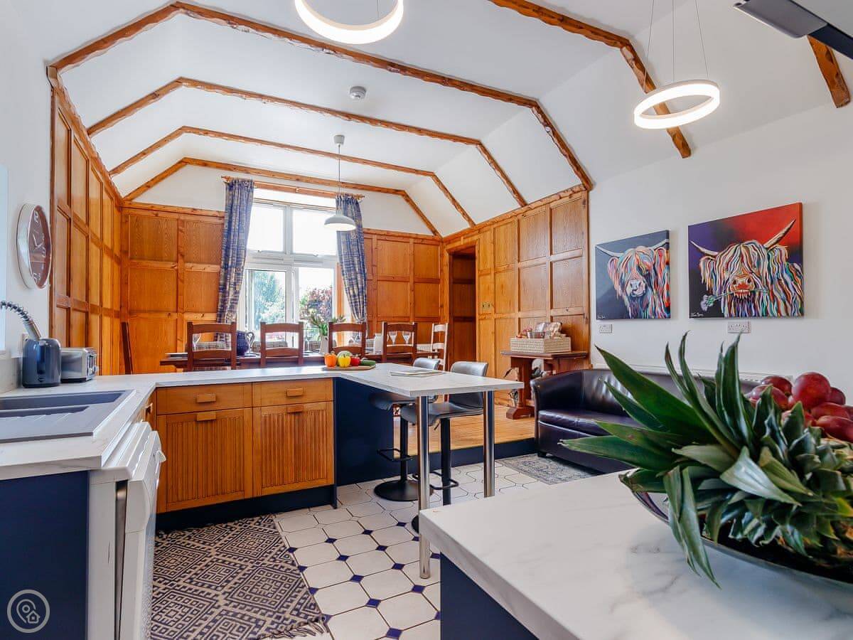 Facilities: it has a washing machine, dishwasher, WiFi, and TV. Bedding and towels are included. There’s a cot and highchair if you need them. Parking is on site. You can bring up to two dogs.