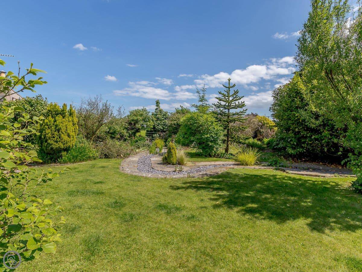 The garden is large and enclosed. It’s mature, with lawns and some big trees, including a monkey puzzle. There are a couple of patio areas and a summerhouse.