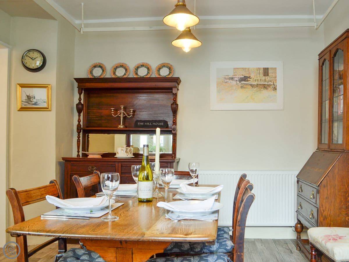 The Mill House is right on the square in Talgarth. It's a detached cottage from the 1830s. It was part of the old mill that's just up the road, and the dining room used to be a butcher's shop.