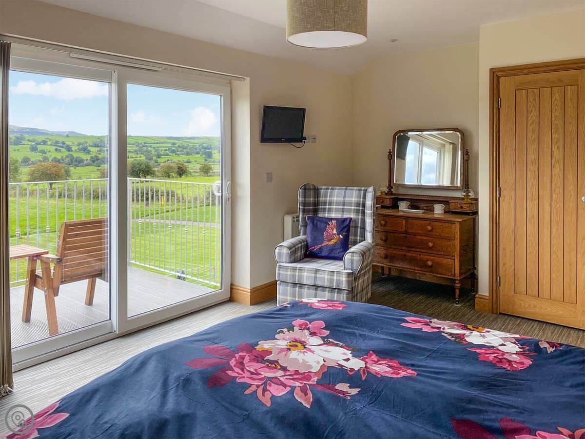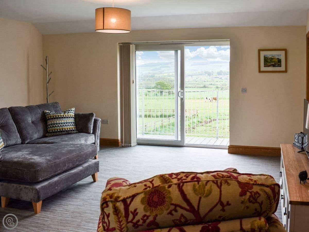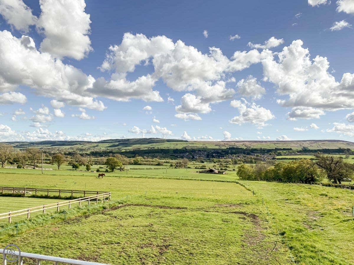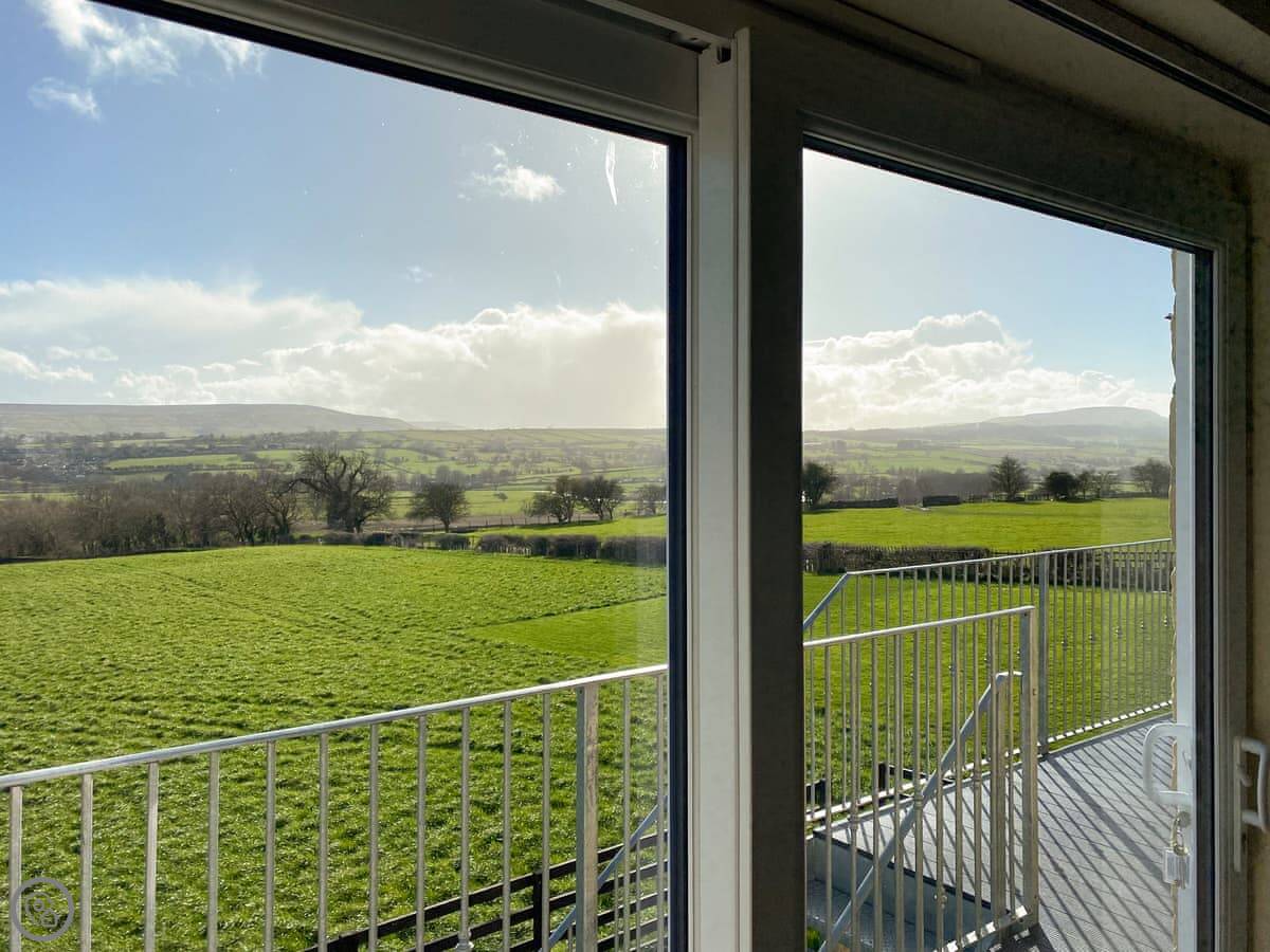 Brookfields is a first-floor apartment on our working farm in Harmby, near Leyburn. It's a quiet spot. The views are the main thing, really. You look straight out over the dales towards Penhill.