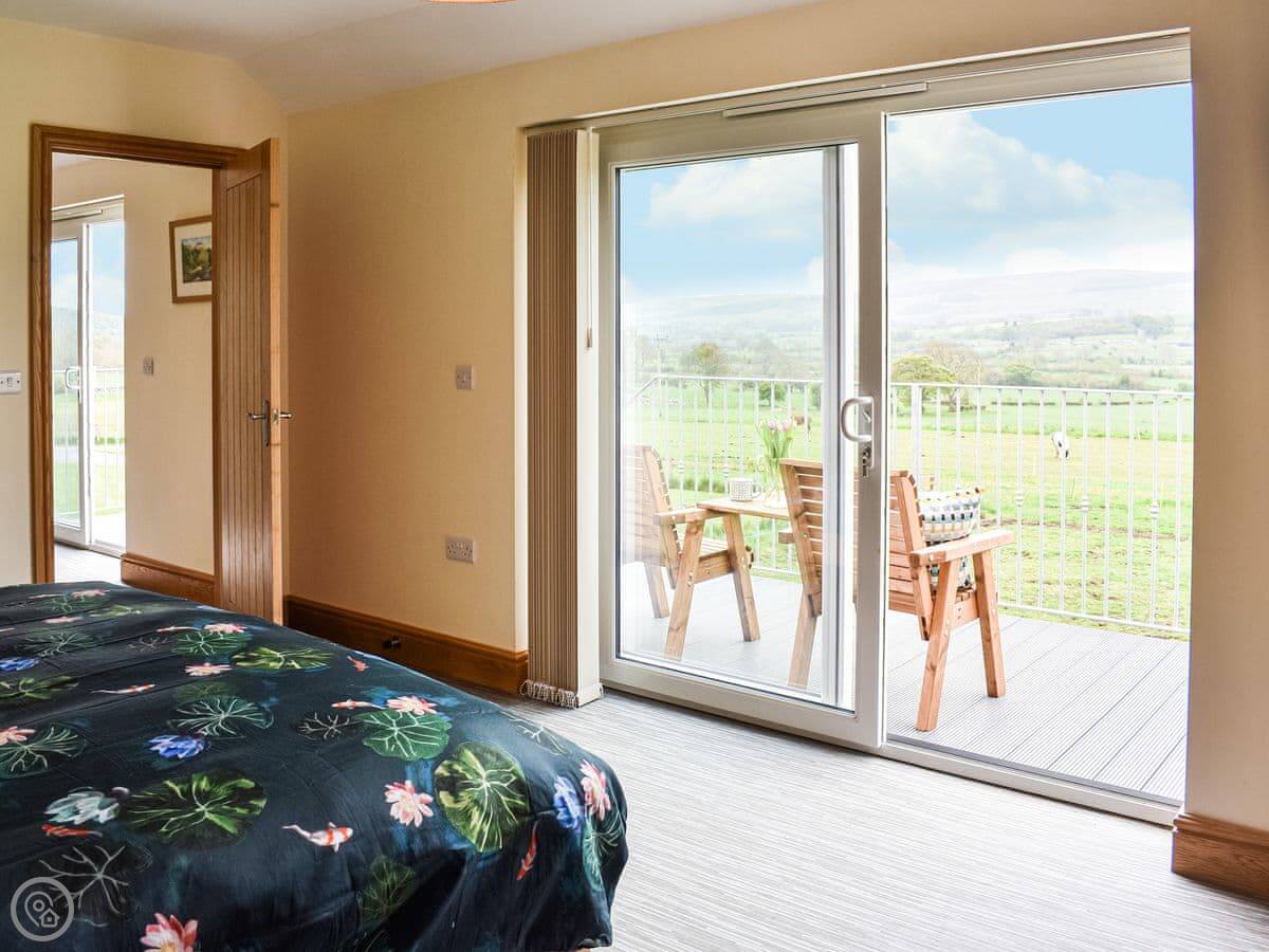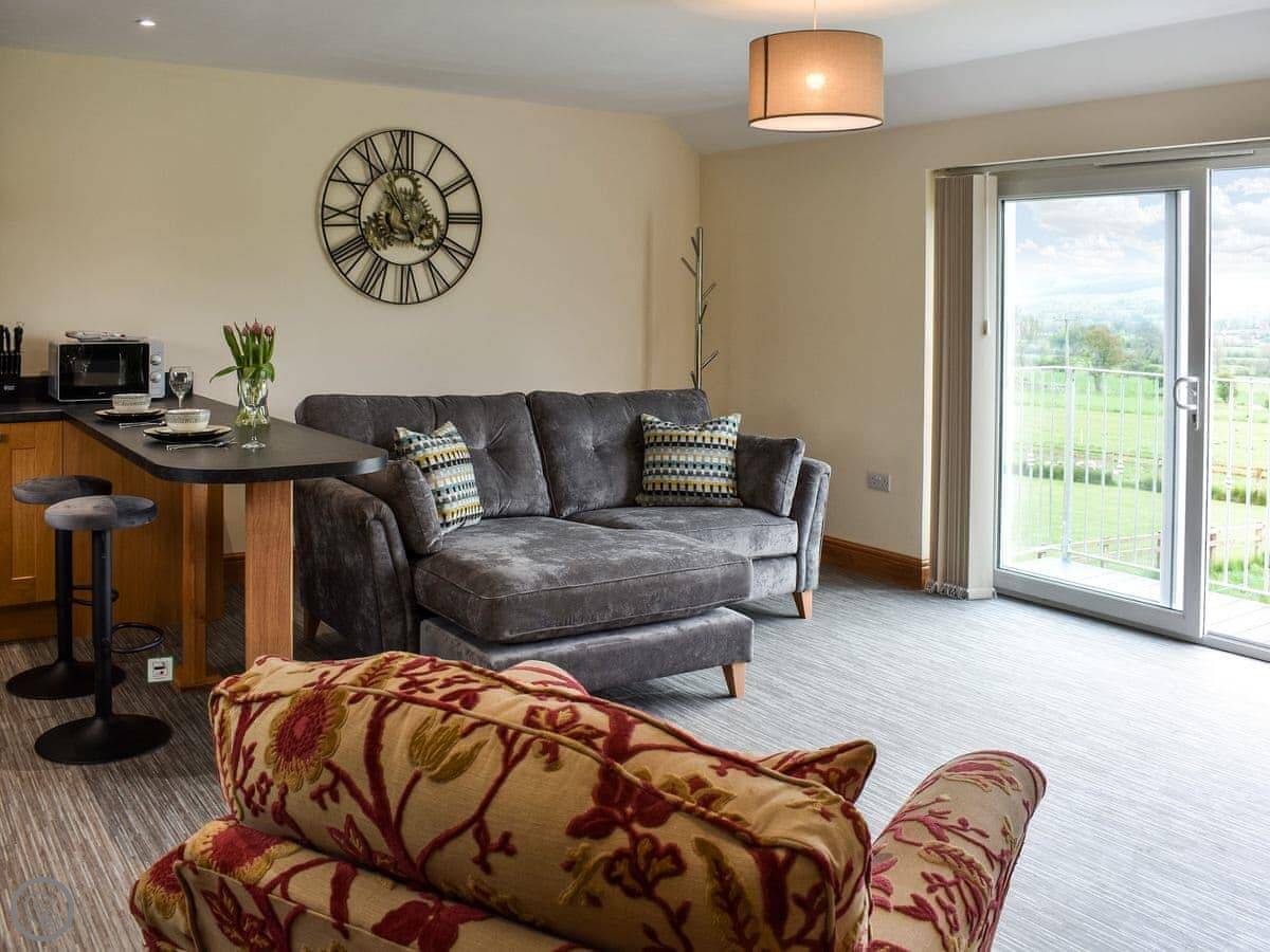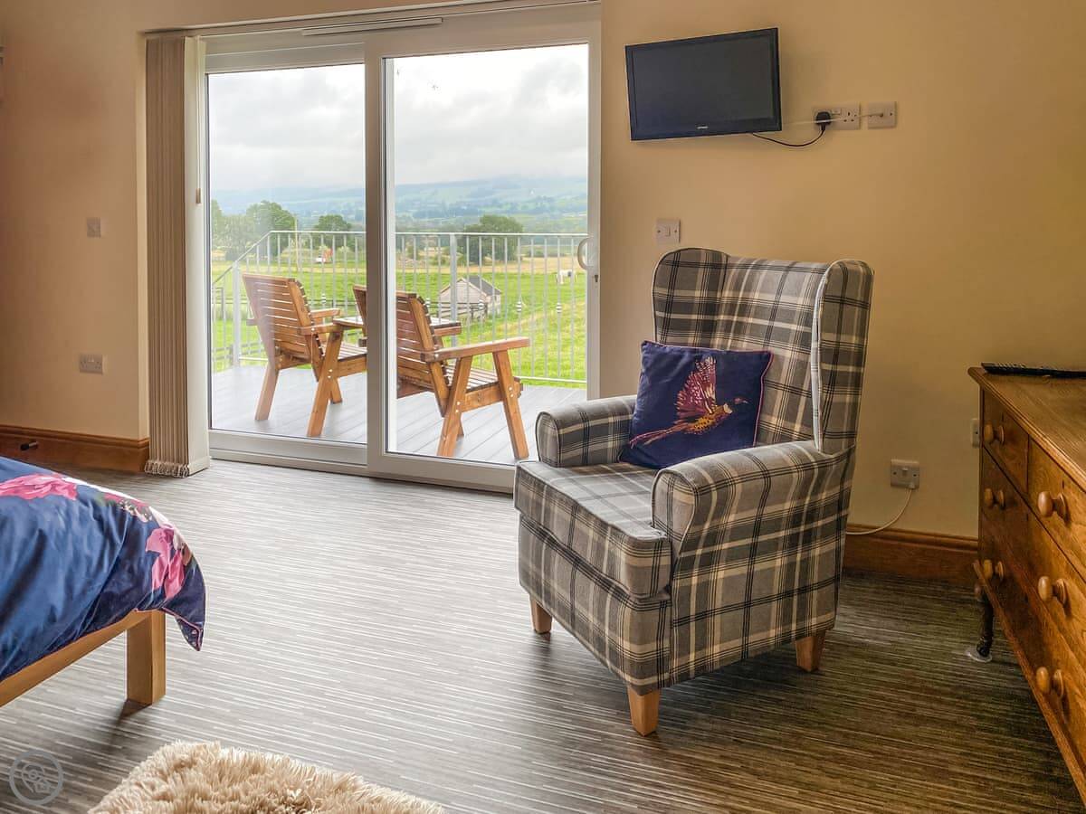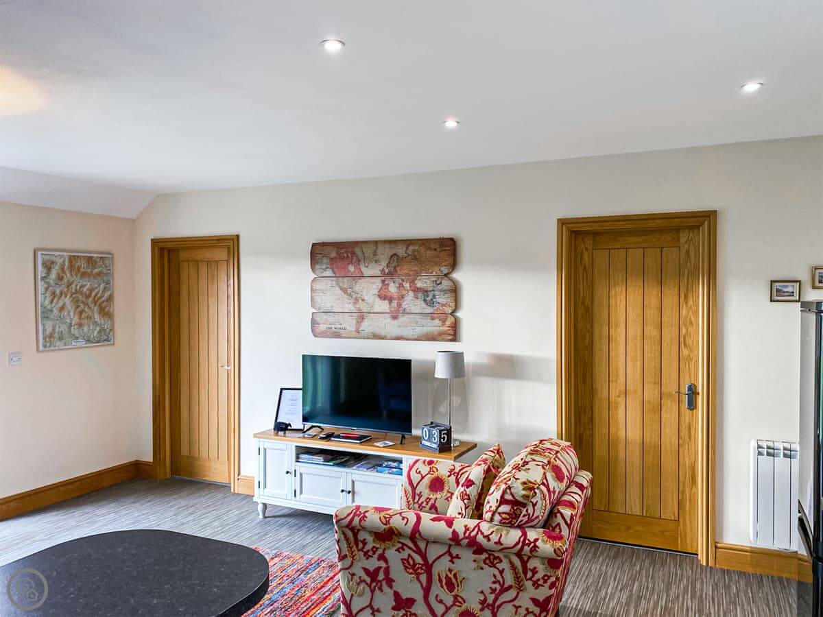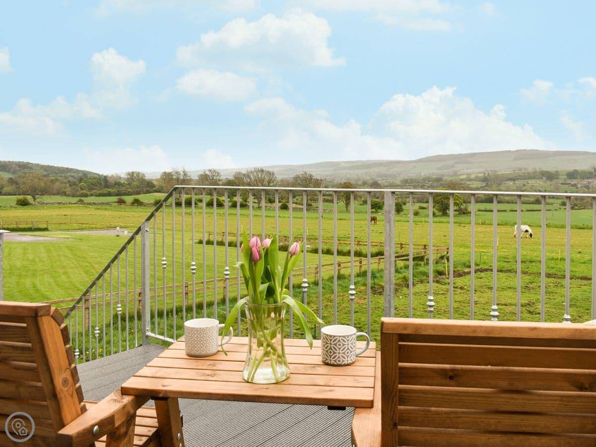 Brookfields is a first-floor apartment on our working farm in Harmby, near Leyburn. It's a quiet spot. The views are the main thing, really. You look straight out over the dales towards Penhill.