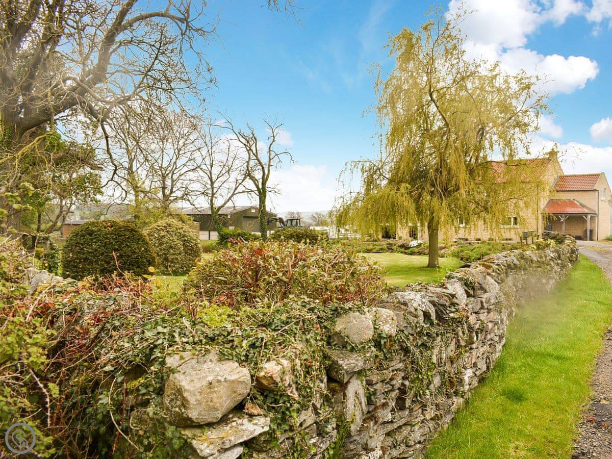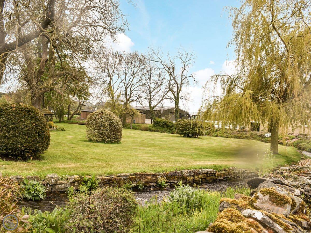 The farm is rural, so there are no shops right here. You can walk to Leyburn in about half an hour. There's a pub a short walk away, and another in Spennithorne that does food. A little beck runs past the bottom of the garden.