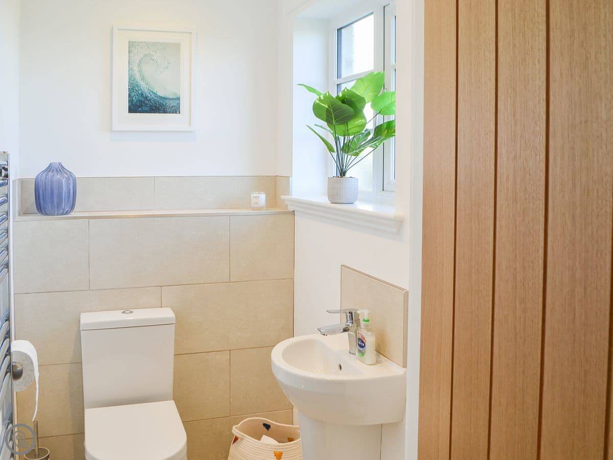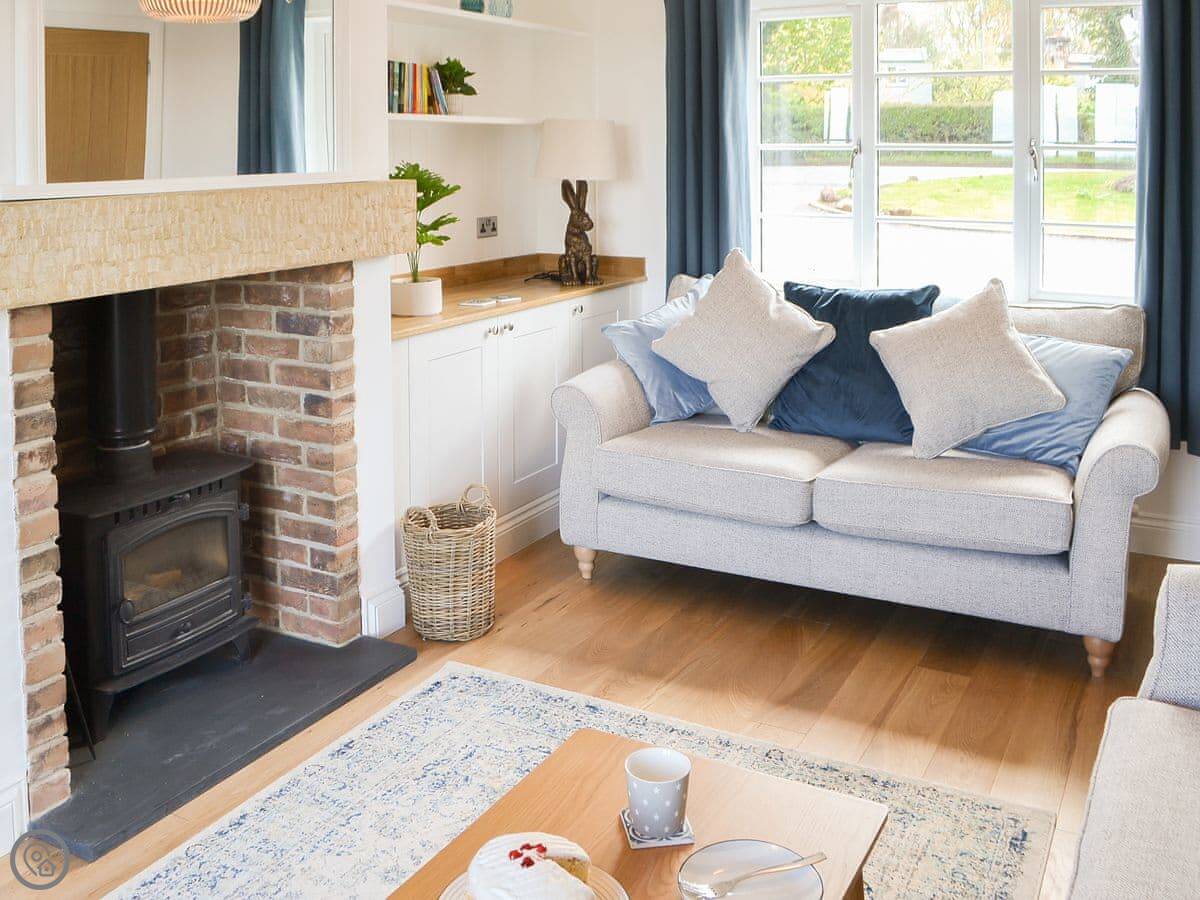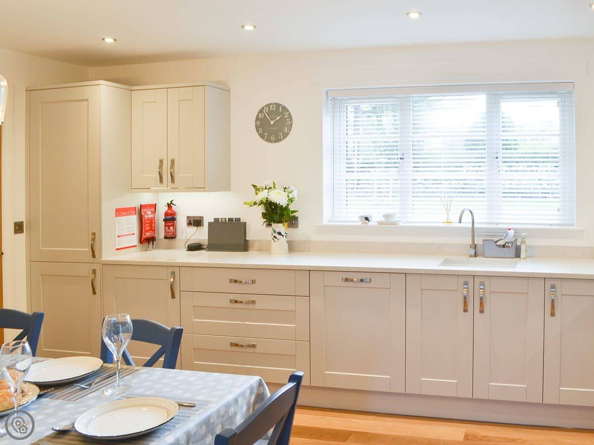 With private parking and enclosed lawned garden benefiting from distant sea views over attractive countryside and farmland. With tasteful interior décor and oak flooring, the living room has a wood burner set within an inglenook fireplace. A wonderful cosy seating area with a 50" Smart TV and Sky channels for your entertainment and ultra fast broadband for your convenience. Hive heating also ensures a warm welcome and hot water for your arrival. French doors lead off the living room into the garden, with a large outdoor dining table with seating for eight. The stunning kitchen and dining area provide a great social space to gather. The high specification kitchen has quartz worktops and is fully equipped with all modern appliances; there is a separate utility room with a washer/dryer and a separate ground floor toilet. Upstairs are three bedrooms, two with double beds, the master with a 43" Smart TV, the third room is perfect for the children with bunk beds. All have wardrobe storage. The property is fully equipped with travel cot, high chair, stairgate and fireguard. There is a family bathroom with a bath and shower over. Outside, there is a securely locked shed for storing several bicycles. From the lawned garden and raised patio area, views extend across open countryside to the coast, a lovely place to sit with the family and enjoy breakfast or supper while enjoying the peace and quiet of the countryside.