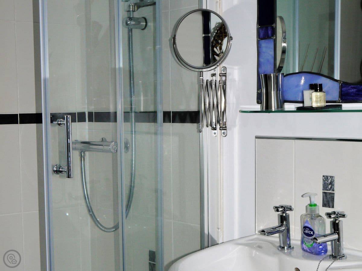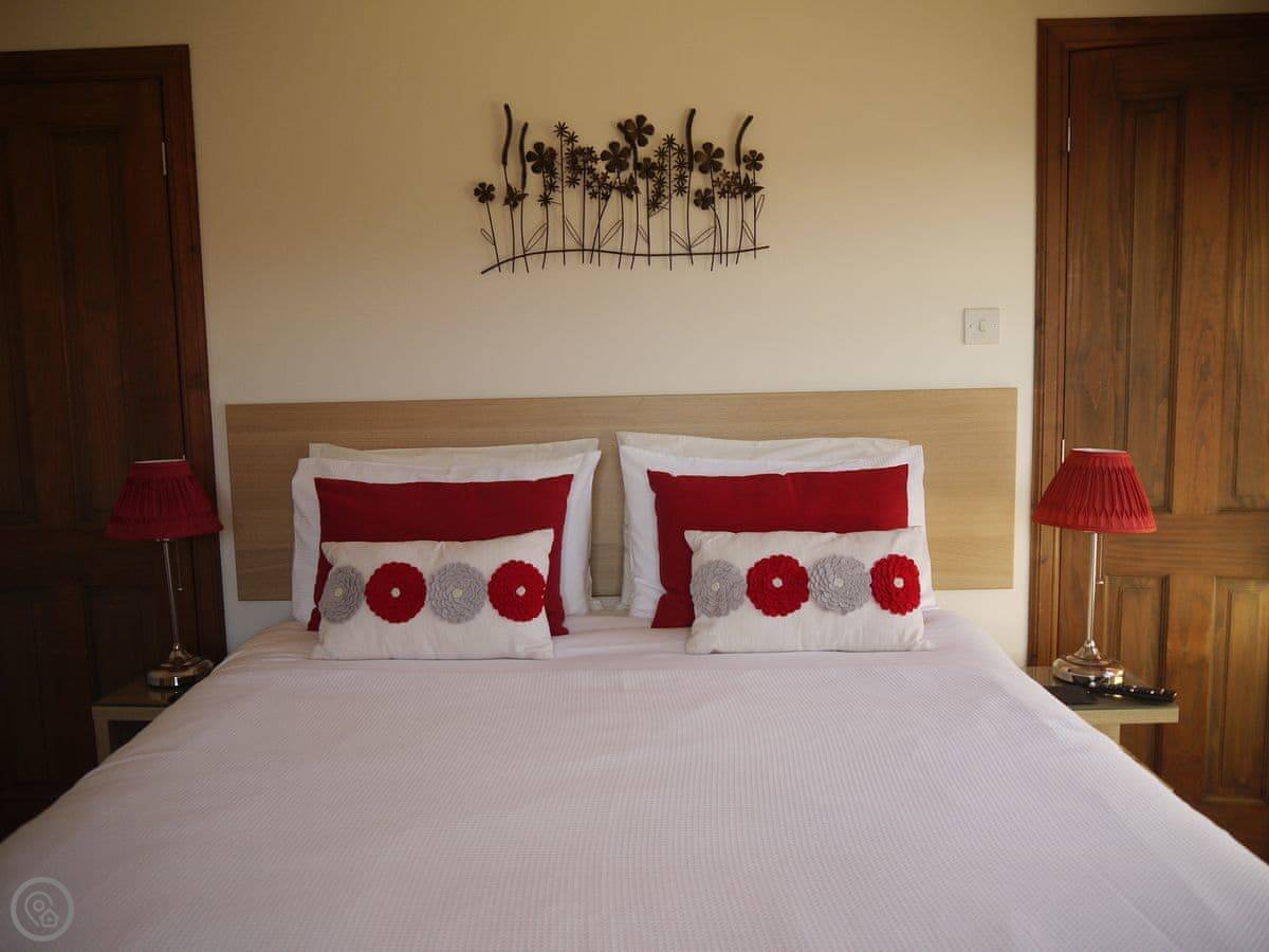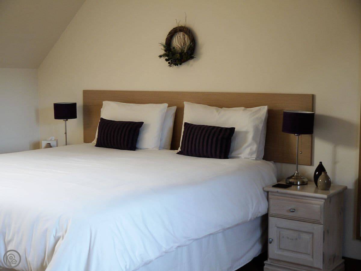 The house sleeps six, in three bedrooms. Each bedroom has its own bathroom. There's also a fourth, separate shower room downstairs. The rating is 4 Star.