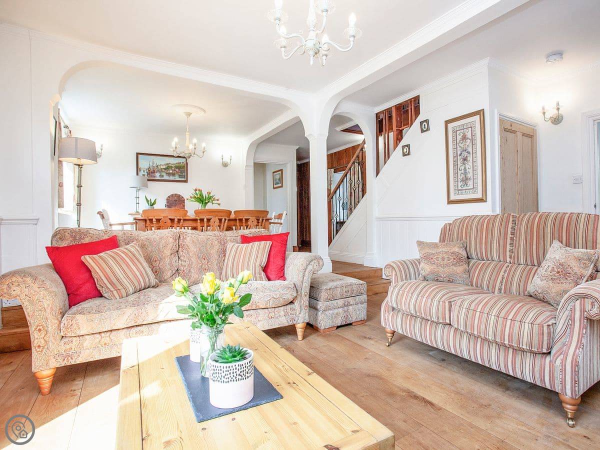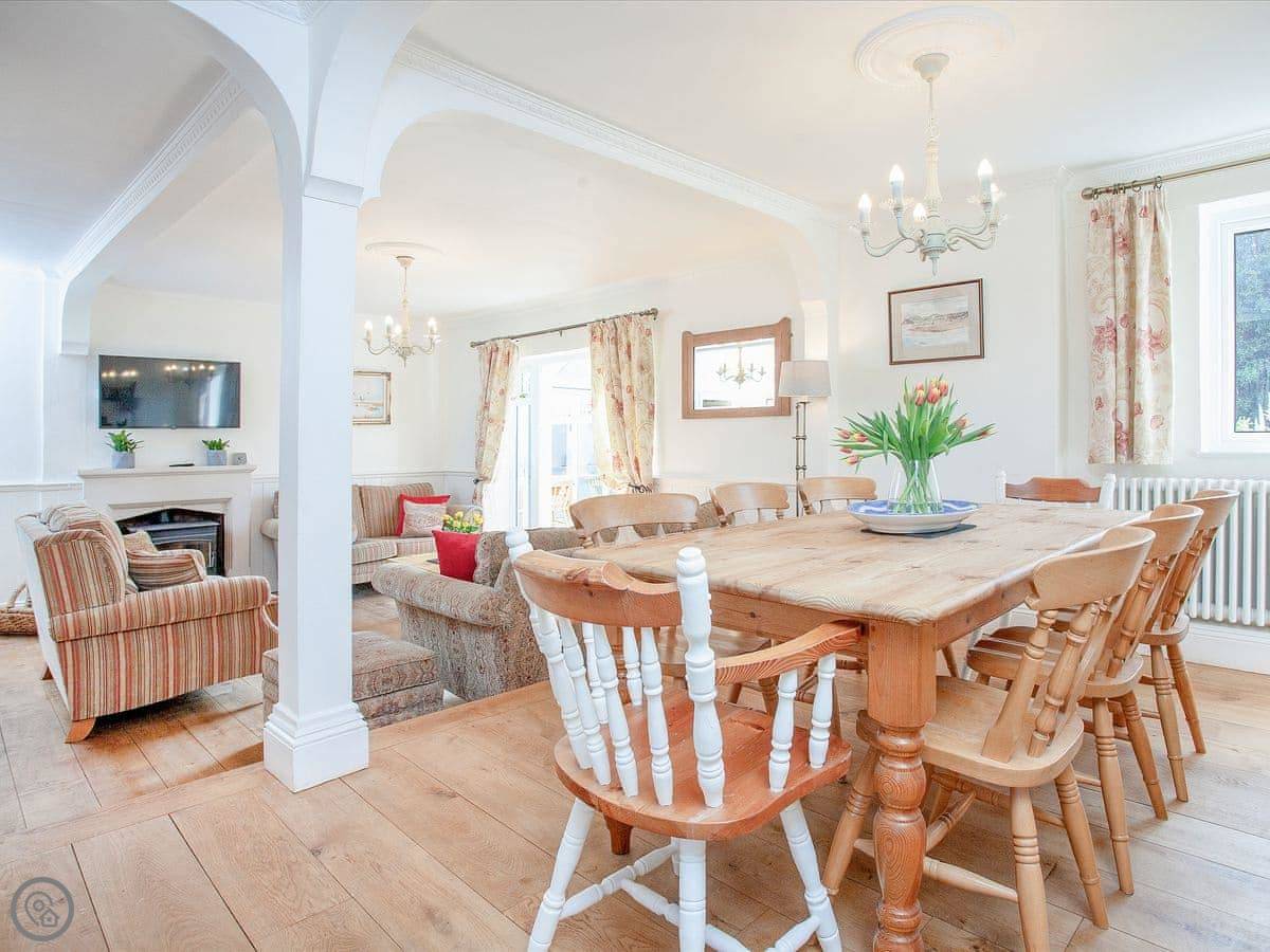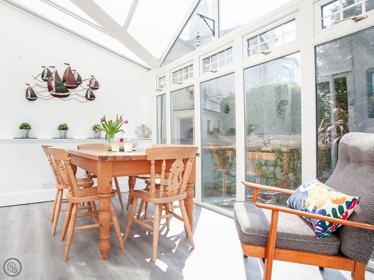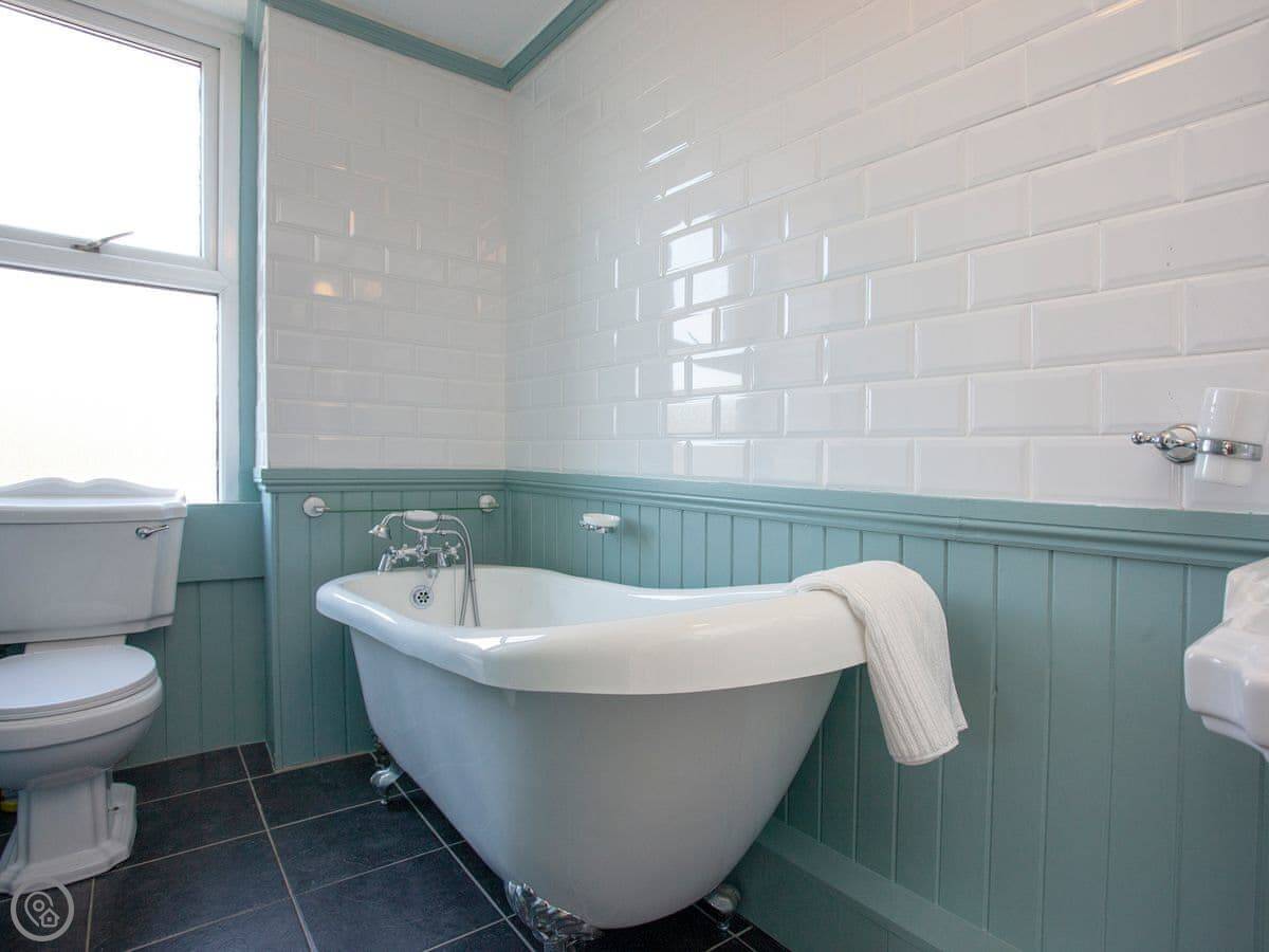 The Coach House is a beautiful semi-detached home with period features and four double bedrooms, each with an en-suite shower room; one bedroom also has the added luxury of a slipper bath. There is an open plan living/dining area with a 40" Smart TV, as well as a second living room. The conservatory, accessed via the spacious kitchen, is a lovely spot to enjoy a mid-morning coffee whilst planning the day’s adventures.