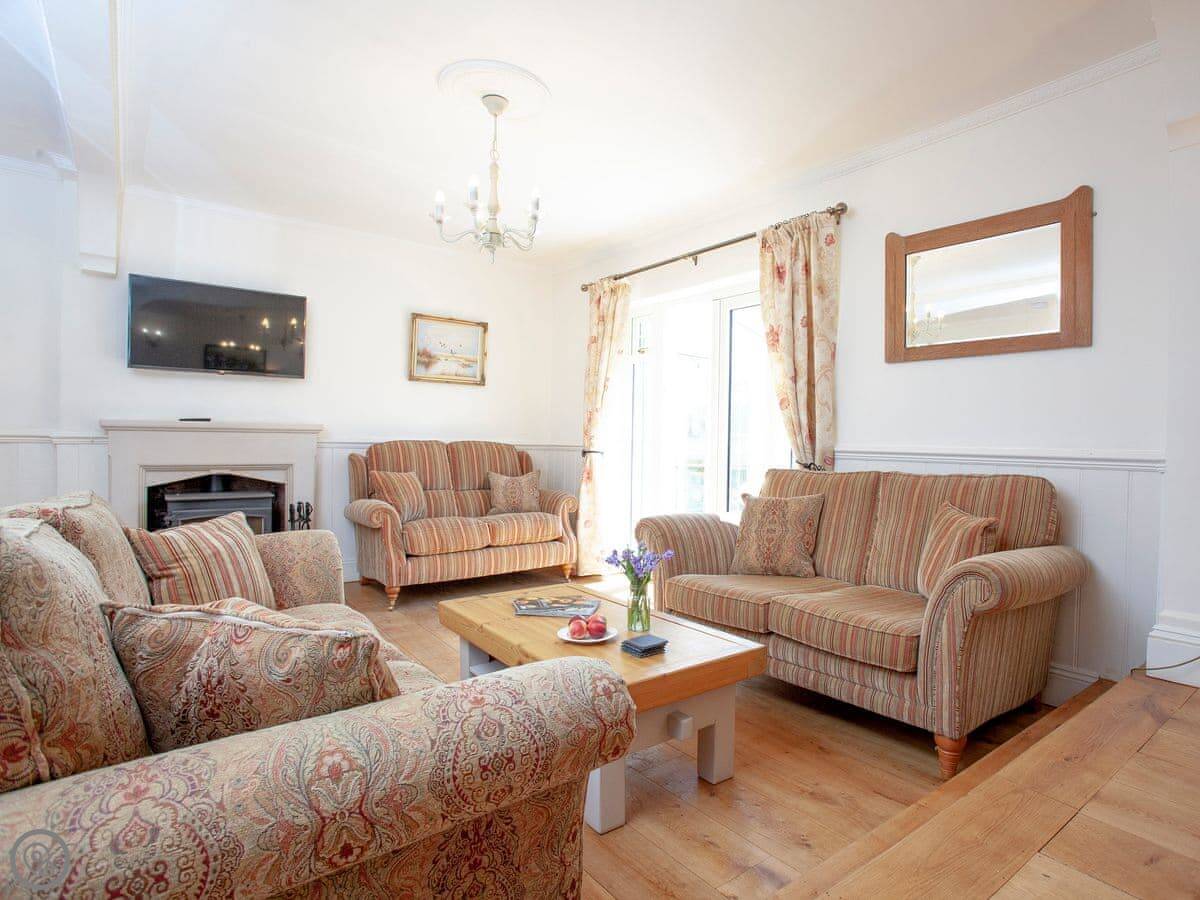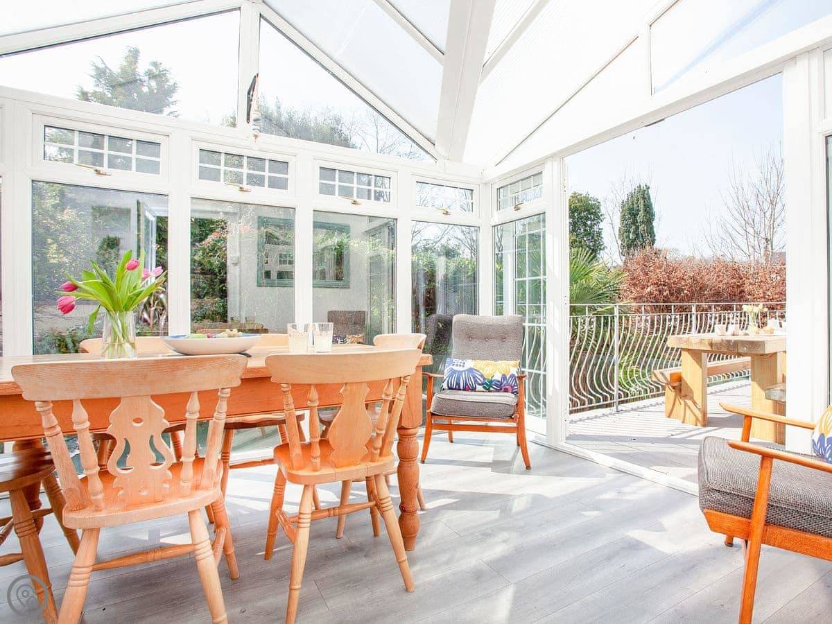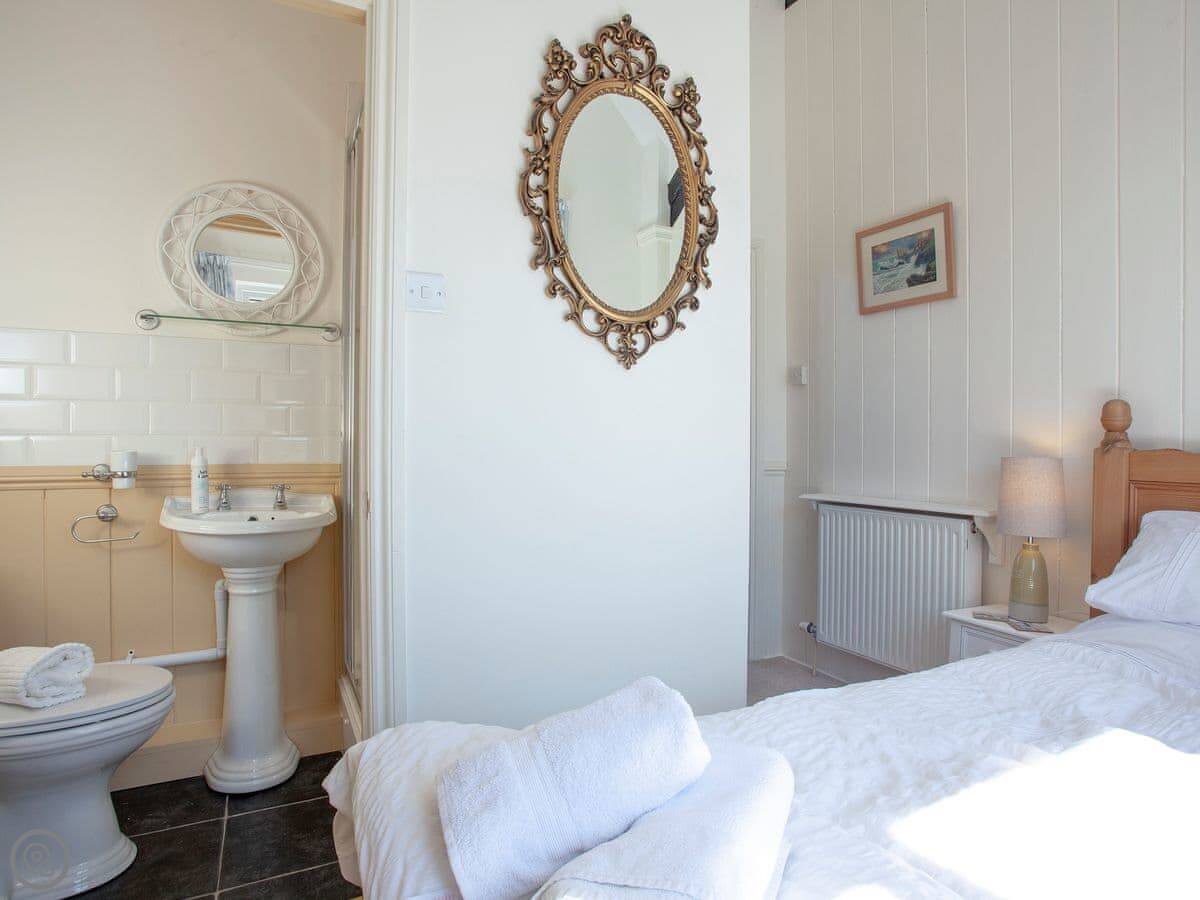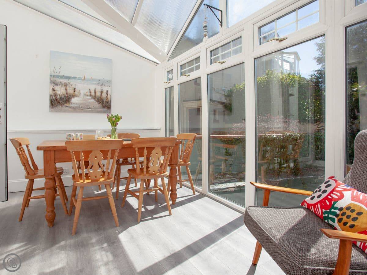 The Coach House is a beautiful semi-detached home with period features and four double bedrooms, each with an en-suite shower room; one bedroom also has the added luxury of a slipper bath. There is an open plan living/dining area with a 40" Smart TV, as well as a second living room. The conservatory, accessed via the spacious kitchen, is a lovely spot to enjoy a mid-morning coffee whilst planning the day’s adventures.