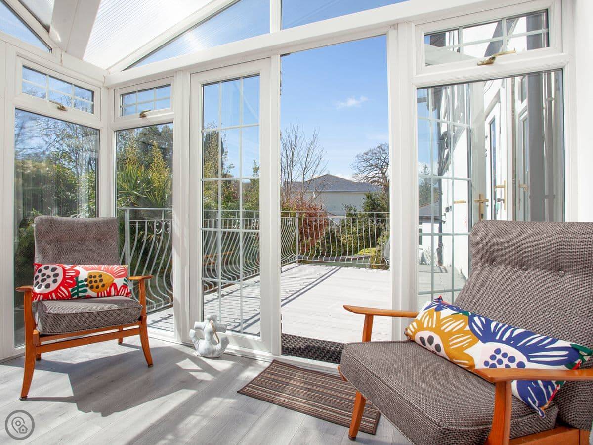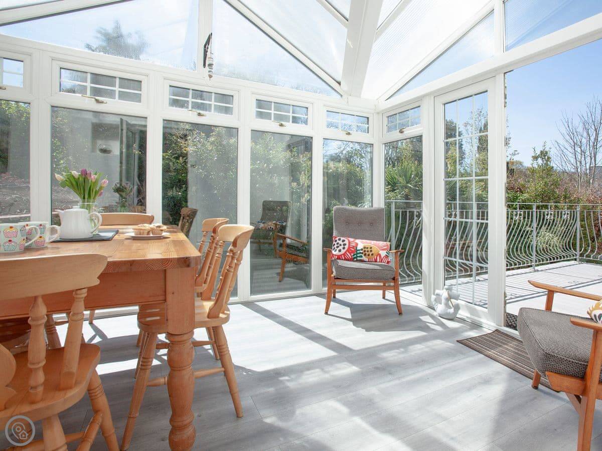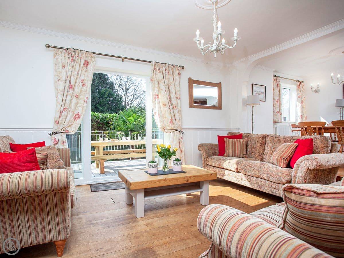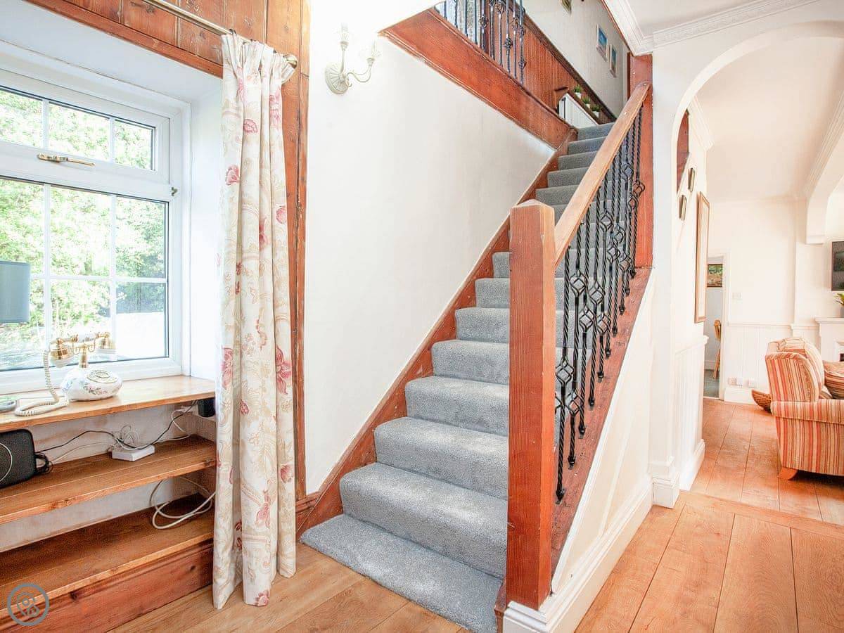 The Coach House is a beautiful semi-detached home with period features and four double bedrooms, each with an en-suite shower room; one bedroom also has the added luxury of a slipper bath. There is an open plan living/dining area with a 40" Smart TV, as well as a second living room. The conservatory, accessed via the spacious kitchen, is a lovely spot to enjoy a mid-morning coffee whilst planning the day’s adventures.