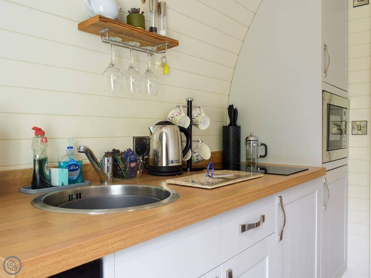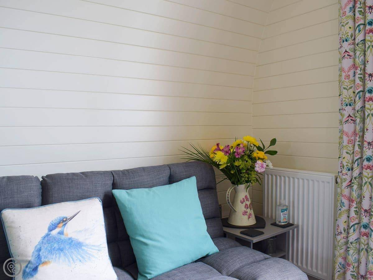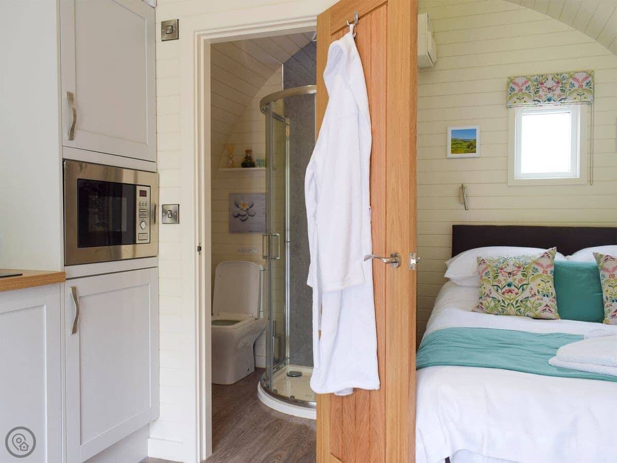 It sleeps two. One room, with the bed, kitchen and sitting area all in the same open space. There's a shower room. It's modern inside, clean and warm. It's got a 4 Star rating.