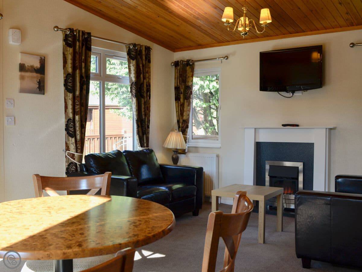 Lodge G is in Dinnet, up near the Loch Kinord Hotel. It's one of a few lodges in the grounds. It's detached, with its own parking space and a bit of outdoor space. It backs right onto the Muir of Dinnet Nature Reserve, so you can step out into the woods and paths.