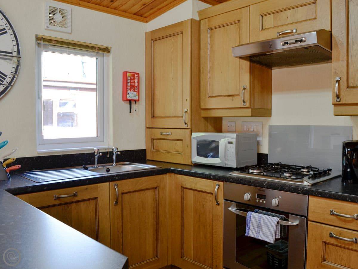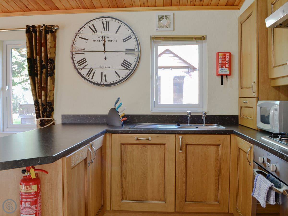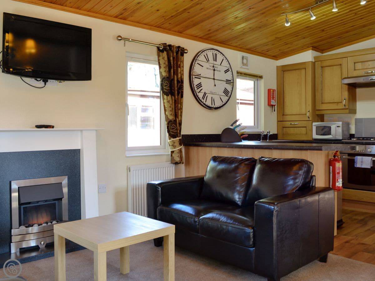 The lodge is open plan, with a kitchen, living and dining area. There's a TV, WiFi, and a dishwasher. Bedding and towels are included. There's a barbecue outside and a shed for storing bikes.