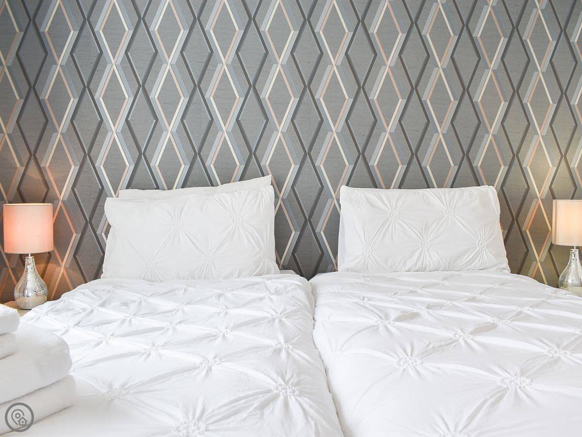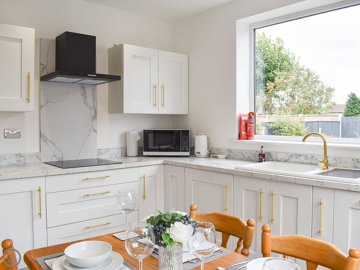 It sleeps four. Two bedrooms, one bathroom with a walk-in shower. It's got a 4 Star rating. It's clean and well kept. The garden is private, with a patio area. Parking is on the drive.