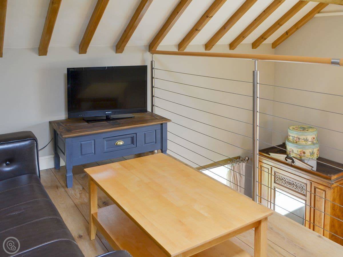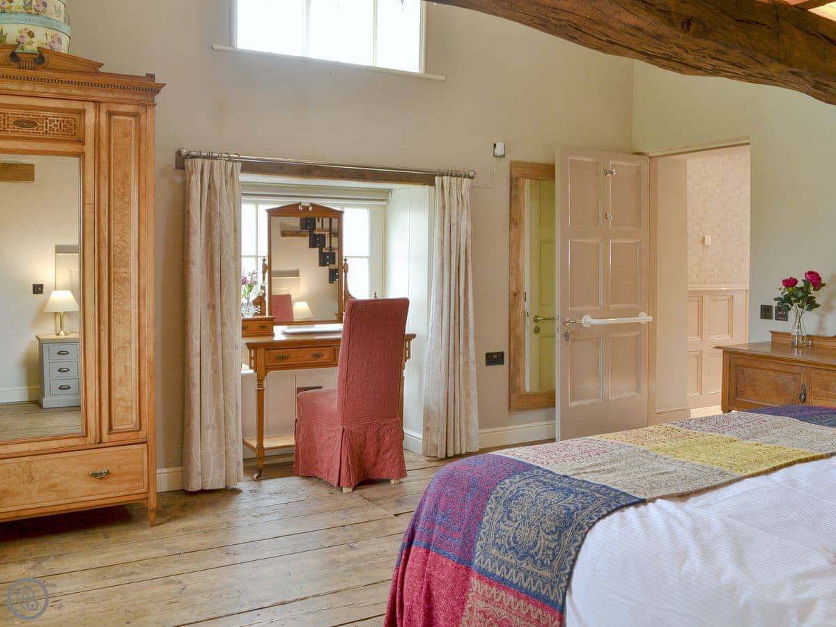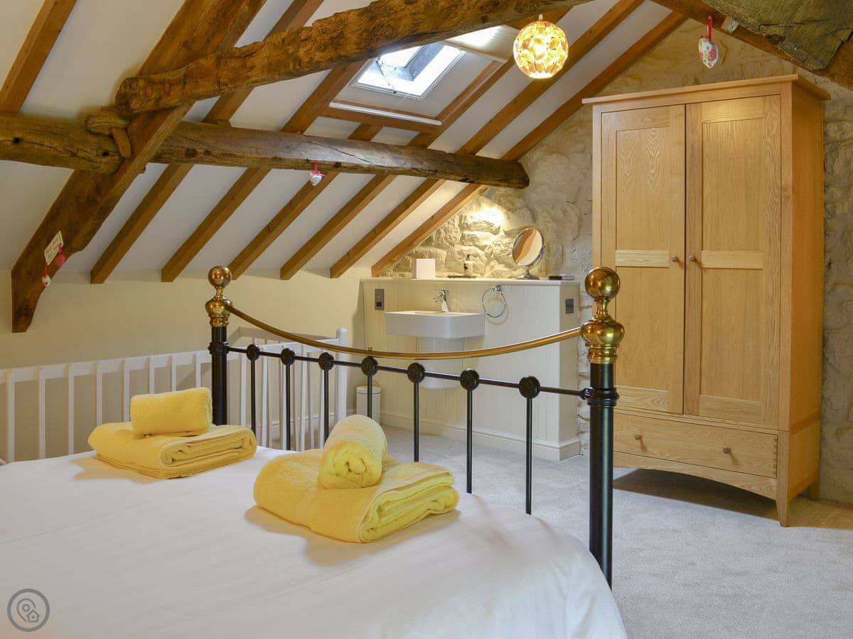 There's a ground floor bedroom with an en-suite wet room, and it has its own spiral staircase up to a private mezzanine sitting area. The other three bedrooms are on the first floor, two with en-suites. One of those is up its own private staircase.