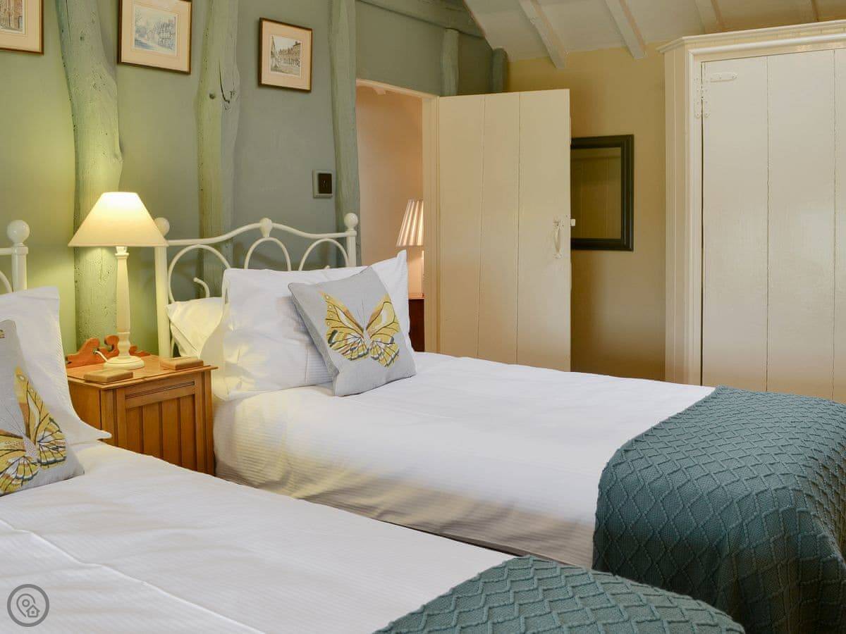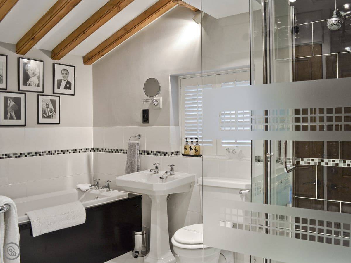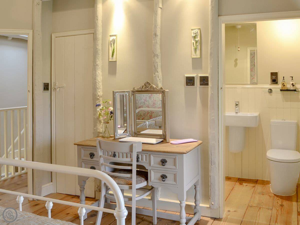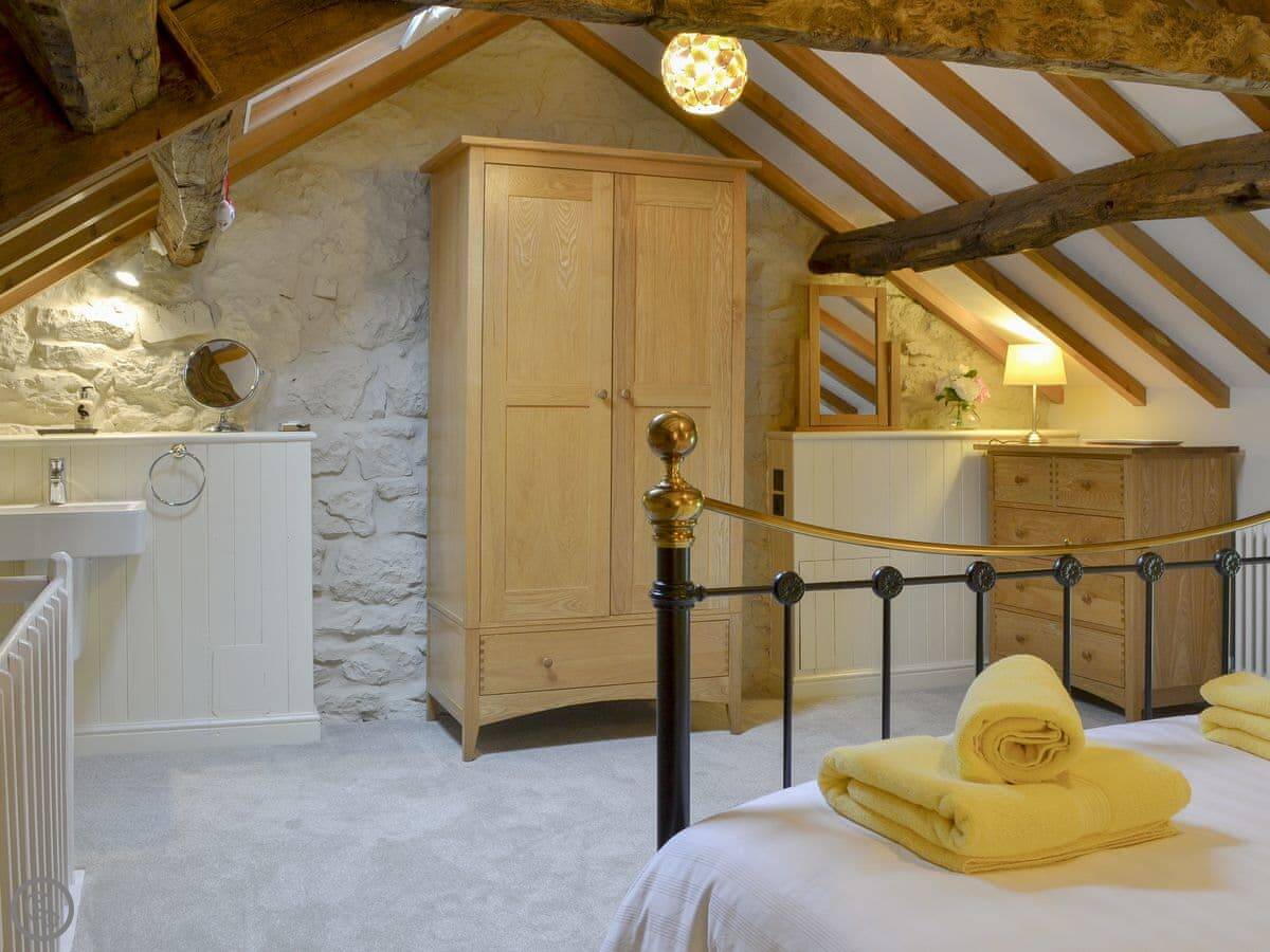 There's a ground floor bedroom with an en-suite wet room, and it has its own spiral staircase up to a private mezzanine sitting area. The other three bedrooms are on the first floor, two with en-suites. One of those is up its own private staircase.