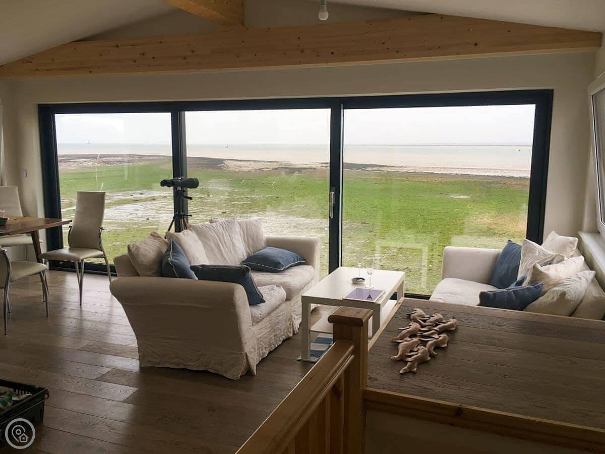 This is Curlew, a place in Point Clear. It's a detached house right on the sea wall. The beach is about five yards from your door. The view is straight out over the estuary, nothing in the way. You get the whole horizon.