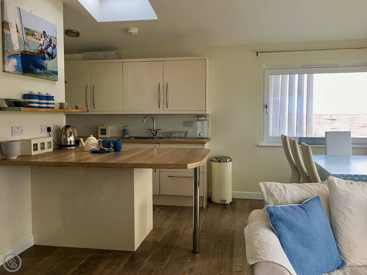 Outside, there's a patio with a BBQ, and the garden gate opens straight onto the sea wall path.