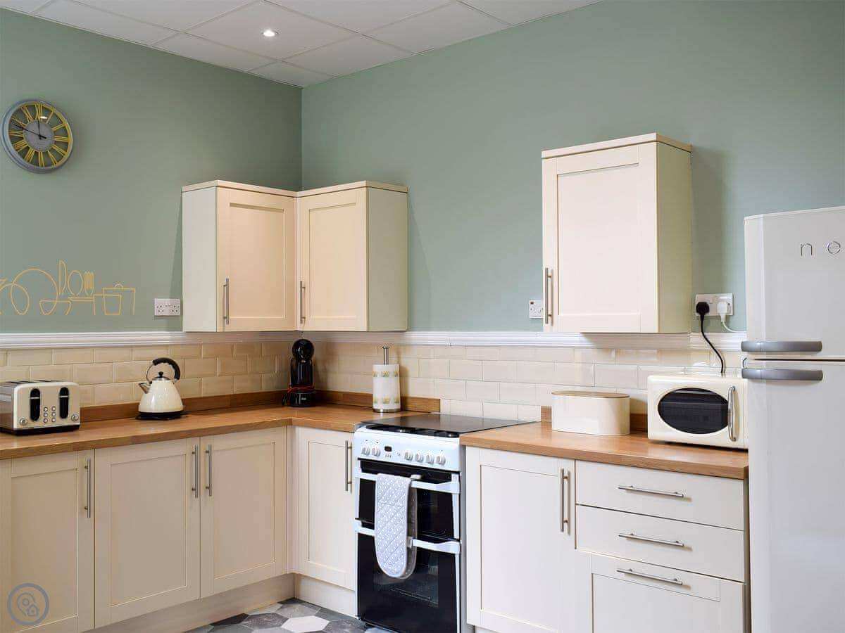 For facilities, you’ve got a dishwasher, washing machine, WiFi, and TV. Bedding and towels are included. We can take up to two dogs. There’s a highchair if you need it.