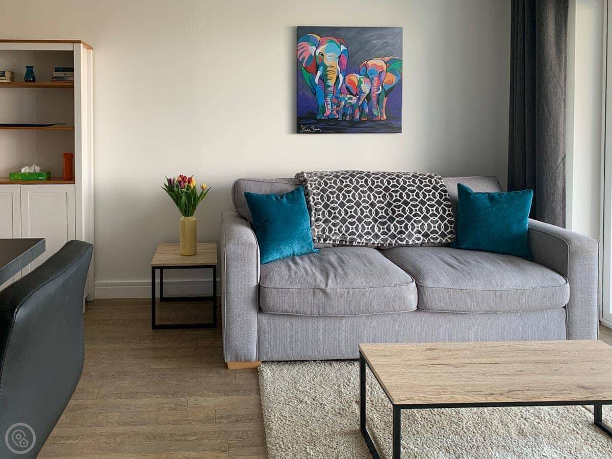 It's a five star place, which means it's well equipped and finished to a high standard. All bedding and towels are included. There's Wi-Fi, a washing machine, dishwasher, and TVs.