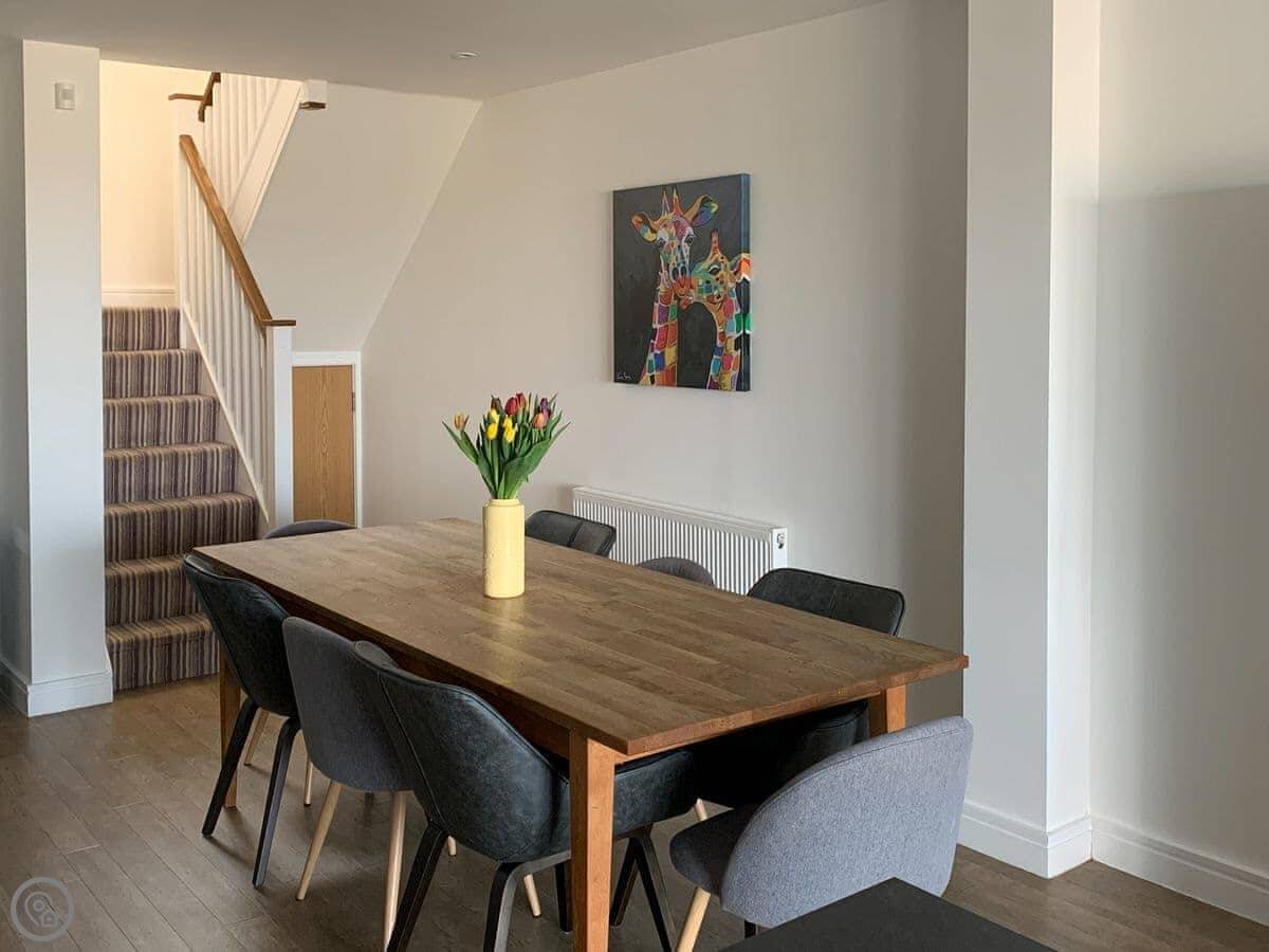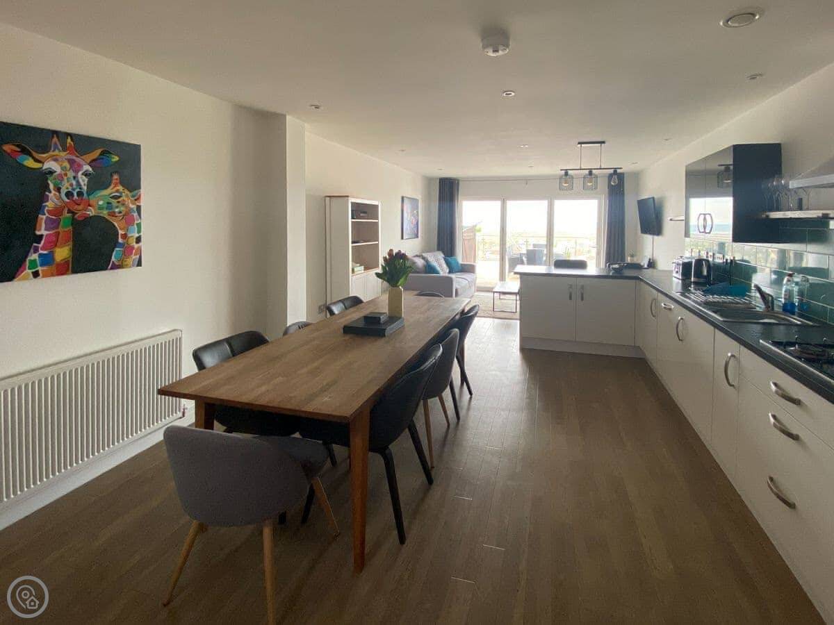 Atlantic View is a town house in Westward Ho! It's on a hill, so you get a really good view over the village, the Burrows, and the sea. It sleeps eight.