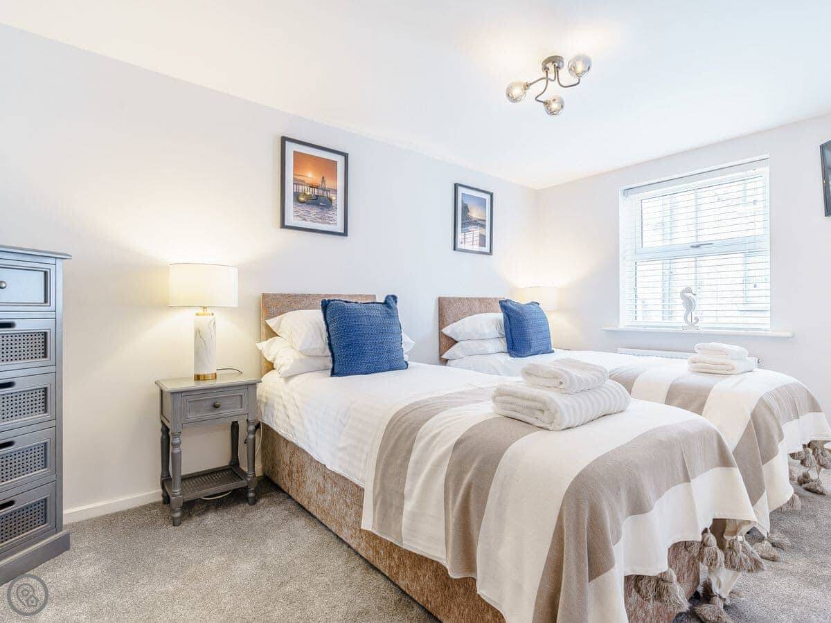 Pannett Place is part of a new development, where you will be welcomed into a bright and spacious apartment. It boasts the convenience of designated under croft parking, a huge bonus in Whitby, as parking can be challenging to find in the summer. Tucked away from the bustling crowds in a peaceful, yet central location, this is the ideal choice for anyone looking to explore Whitby, as well as the surrounding coastline and the North York Moors National Park. Up on the first floor above the parking bays, this apartment has a large, open plan living area and a well-equipped kitchen area. Both bedrooms are well presented, with high quality linen allowing you to slip into a deep and refreshing sleep. As well as the master double bedroom, there is a twin bedroom.