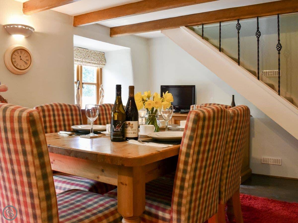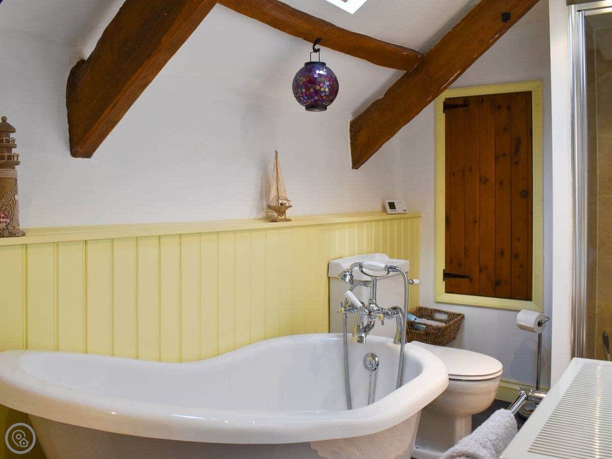 It sleeps four in two bedrooms. There's one bathroom, with a shower over the bath. It's got a 4 Star grading. It's comfortable and has everything you need. The stairs are quite steep, like a lot of old cottages.