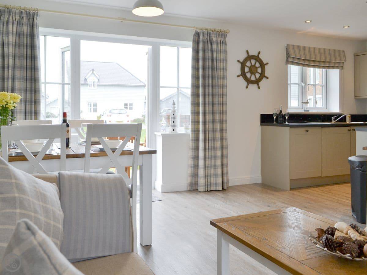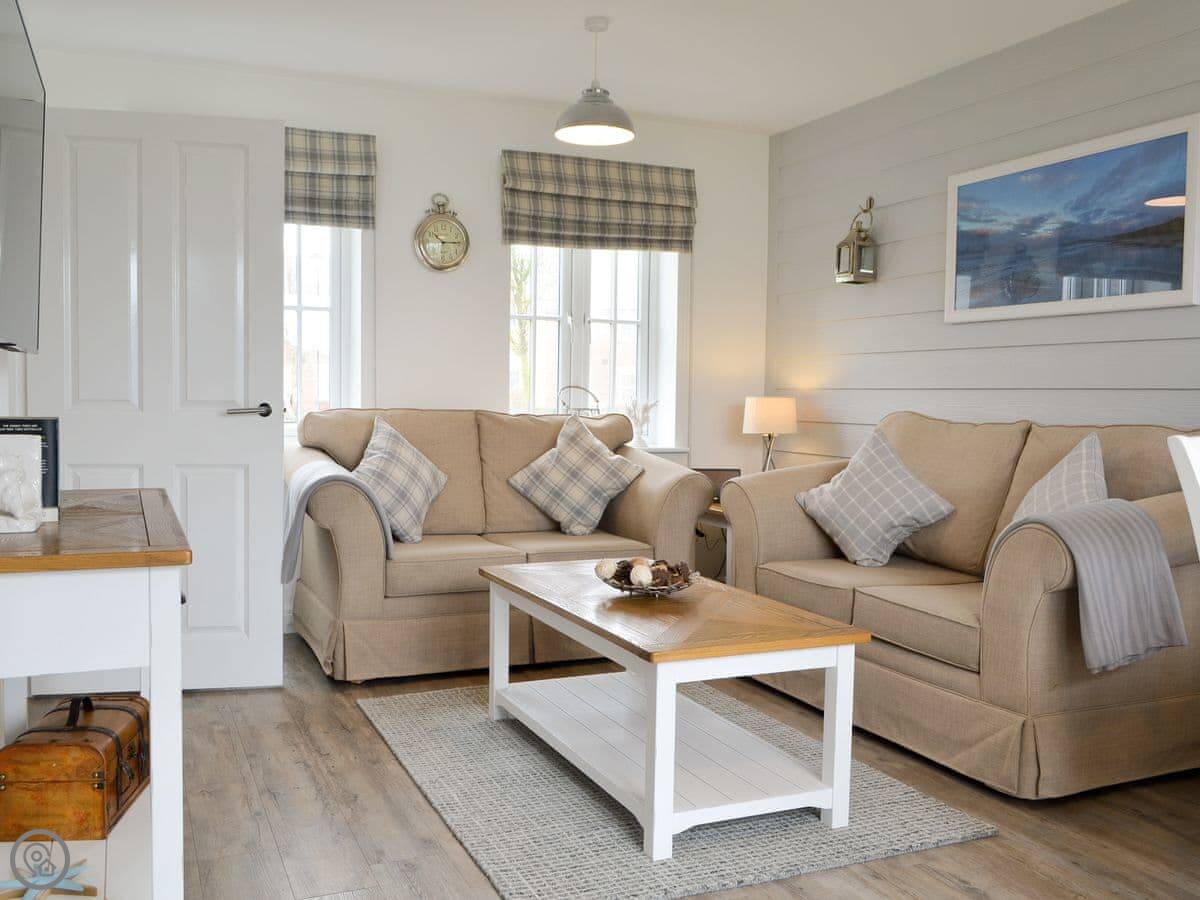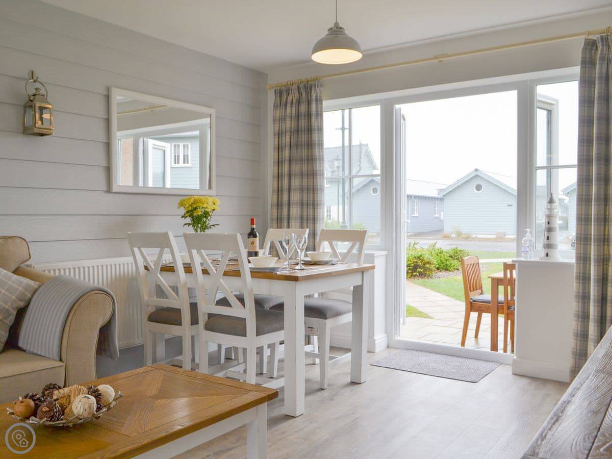 Pine View Cottage is a beautifully presented two bedroomed holiday home within The Bay Filey holiday village which is nestled within open countryside on the edge of the beach close to the traditional seaside town of Filey. This cottage is ideal for four to enjoy this beautiful unspoilt area of the Yorkshire. The spacious open plan living/dining area is bright and airy with a fresh seaside theme which also runs throughout the house. French doors open out onto a private patio area where you can enjoy a morning coffee or a relaxing glass of wine on an evening. The kitchen is well planned with plenty of work-top space to prepare delicious home cooked meals. To the first floor are two very pretty bedrooms offering both twin and double beds. The accommodation is completed with the house bathroom with a bath with shower over.