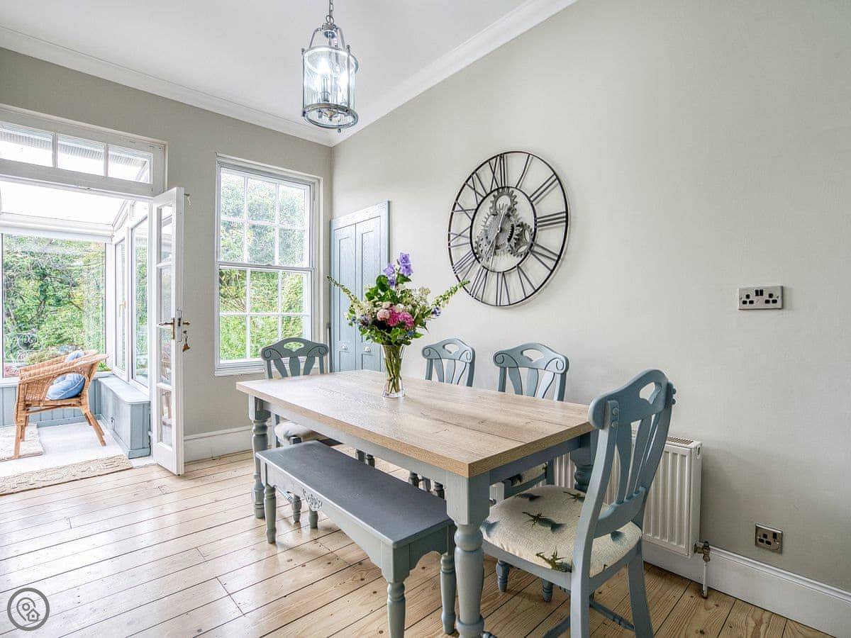 After a day exploring, Appletree Cottage provides a relaxing cosy cottage to return to. The pretty garden gets the sun most of the day and is great for a family barbecue. There is ample space for everyone, the living room on the ground floor has a wood burning stove perfect for cooler evenings, a sun porch leads off the dining room and there is a TV room on the first floor. Beach 13 miles.